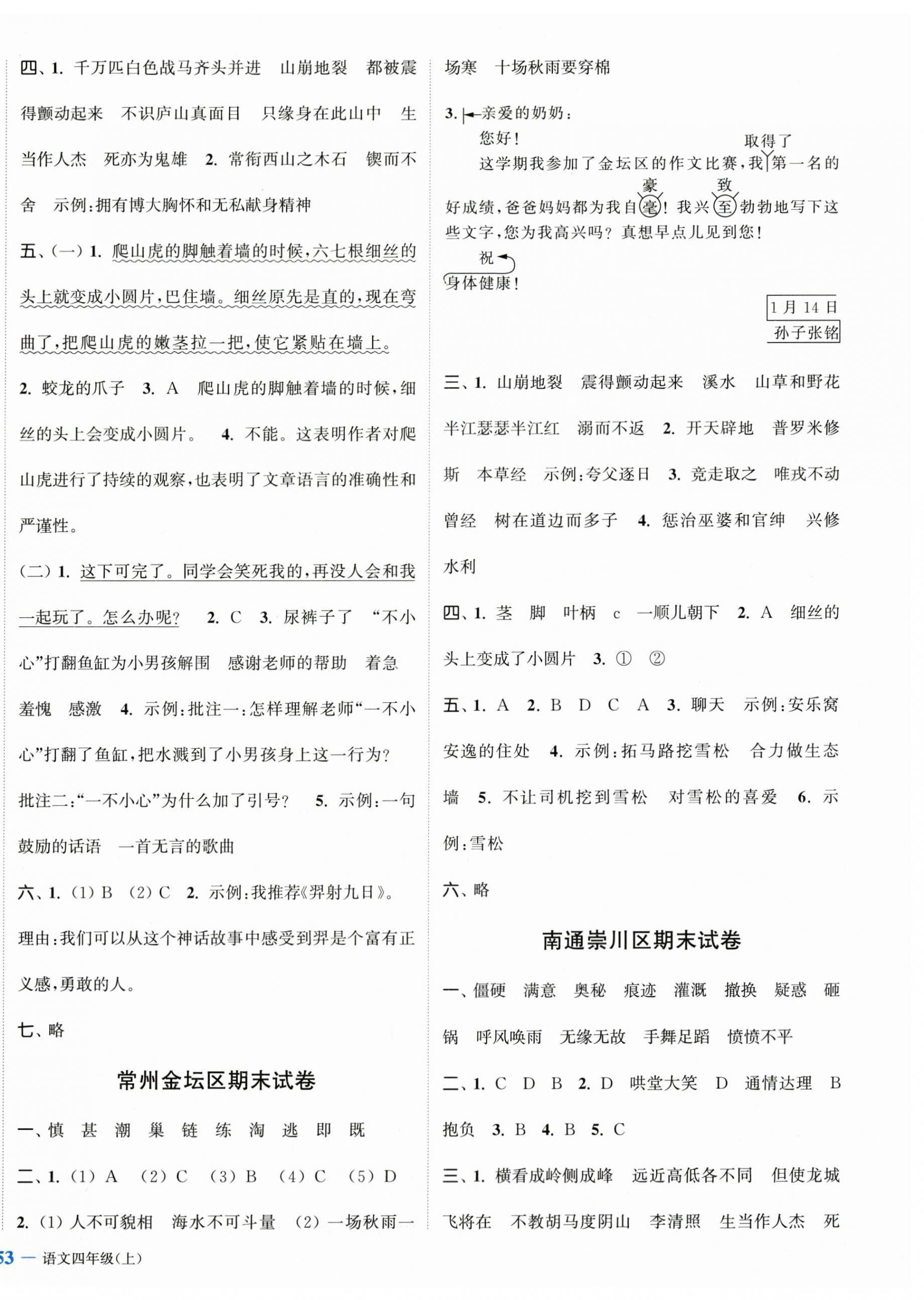 注:目前有些书本章节名称可能整理的还不是很完善,但都是按照顺序排列的,请同学们按照顺序仔细查找。练习册 2025年江苏金考卷四年级语文上册人教版 答案主要是用来给同学们做完题方便对答案用的,请勿直接抄袭。
