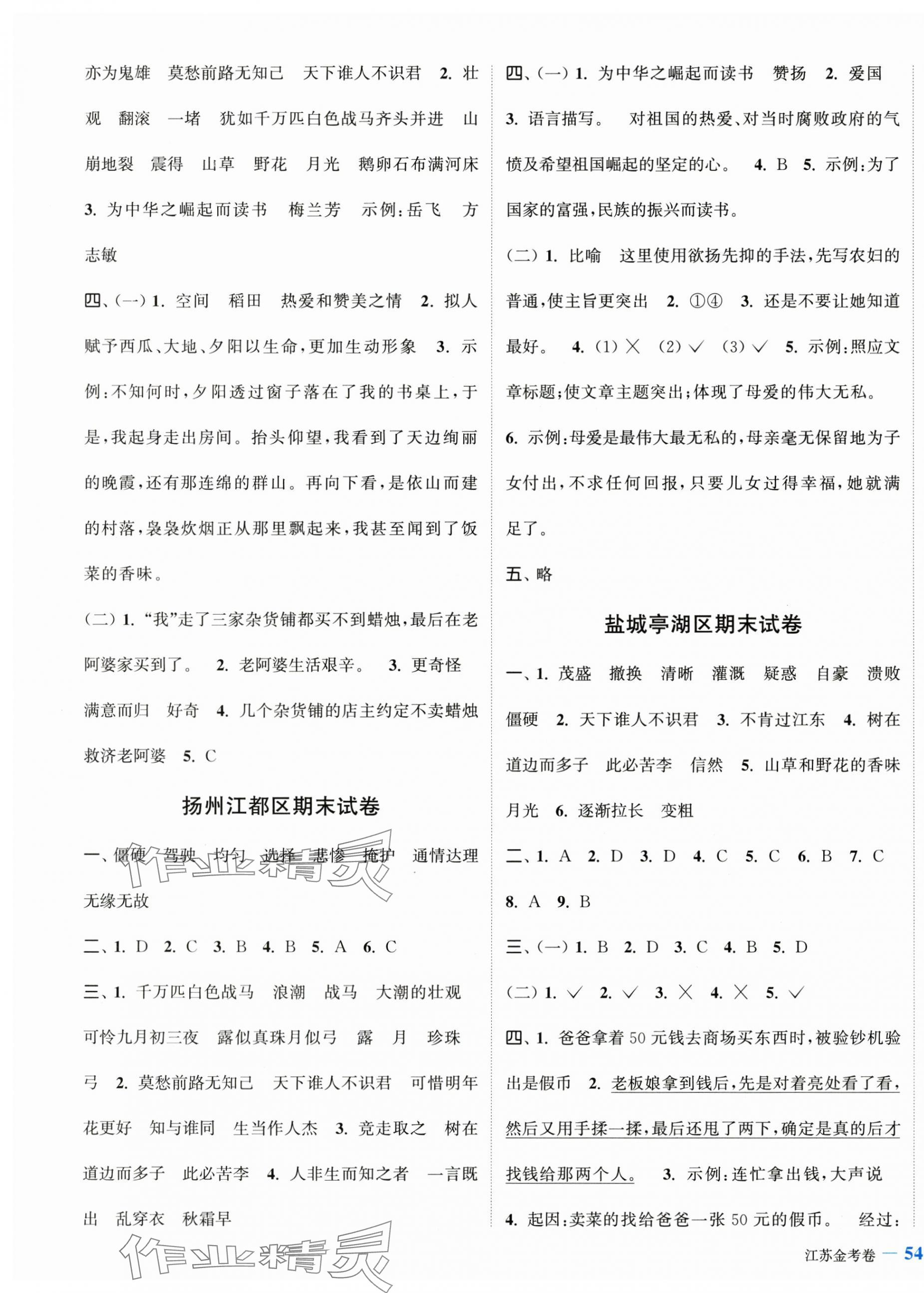 注:目前有些书本章节名称可能整理的还不是很完善,但都是按照顺序排列的,请同学们按照顺序仔细查找。练习册 2025年江苏金考卷四年级语文上册人教版 答案主要是用来给同学们做完题方便对答案用的,请勿直接抄袭。