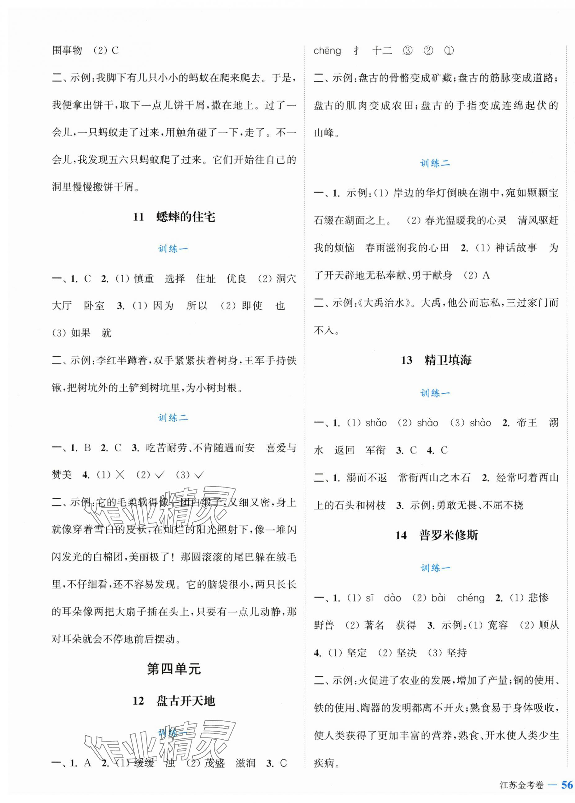 注:目前有些书本章节名称可能整理的还不是很完善,但都是按照顺序排列的,请同学们按照顺序仔细查找。练习册 2025年江苏金考卷四年级语文上册人教版 答案主要是用来给同学们做完题方便对答案用的,请勿直接抄袭。
