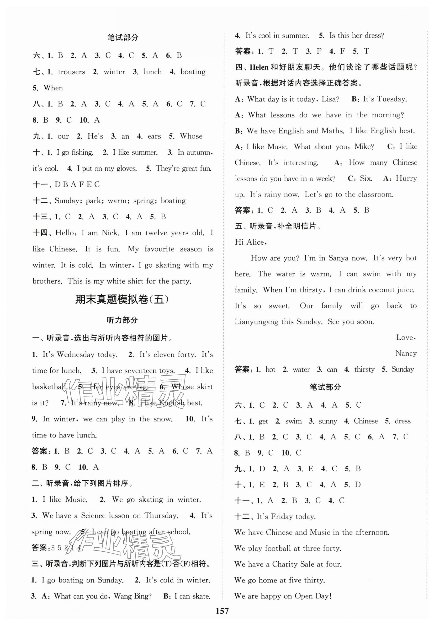 注:目前有些书本章节名称可能整理的还不是很完善,但都是按照顺序排列的,请同学们按照顺序仔细查找。练习册 2025年江苏金考卷四年级英语上册译林版 答案主要是用来给同学们做完题方便对答案用的,请勿直接抄袭。