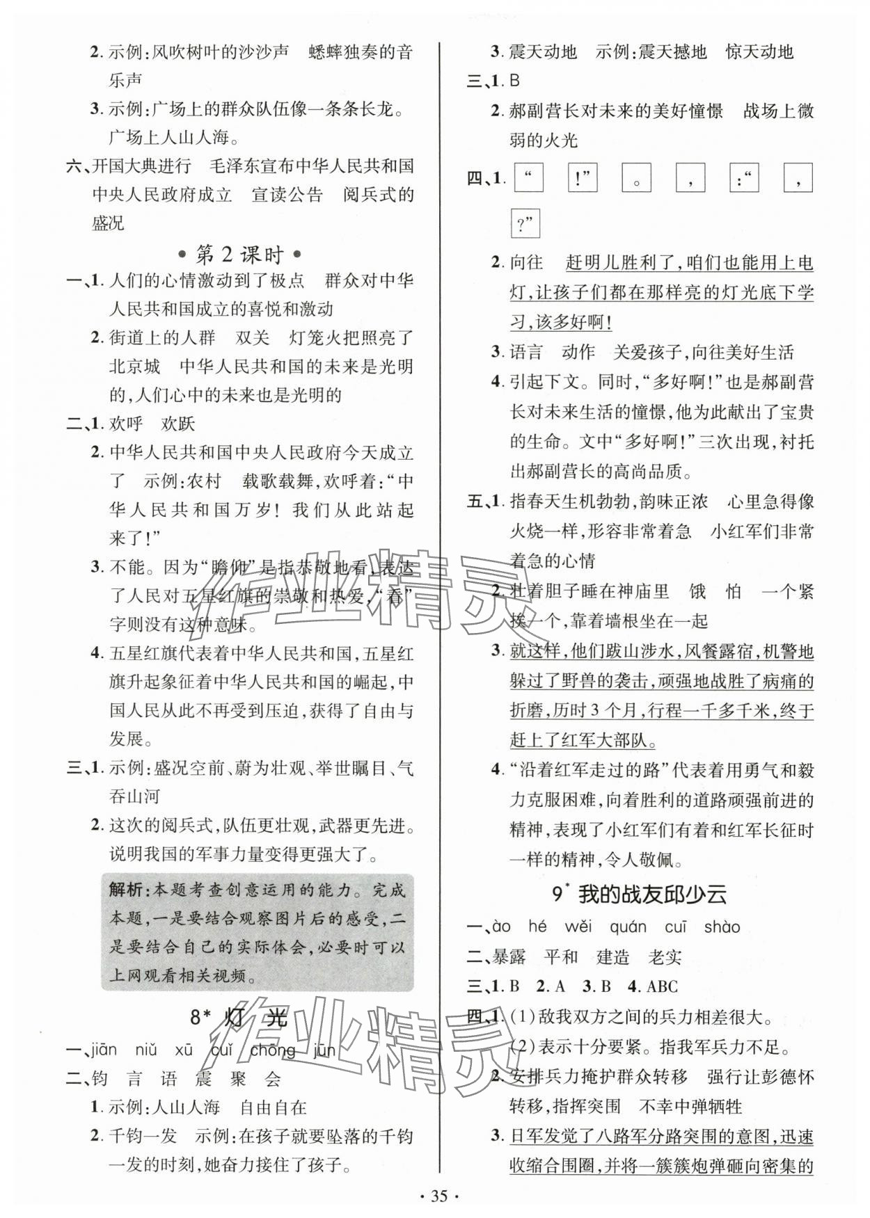 精英家教网> 2025年高分突破创优100六年级语文上册人教版 > 第7页 参考答案
