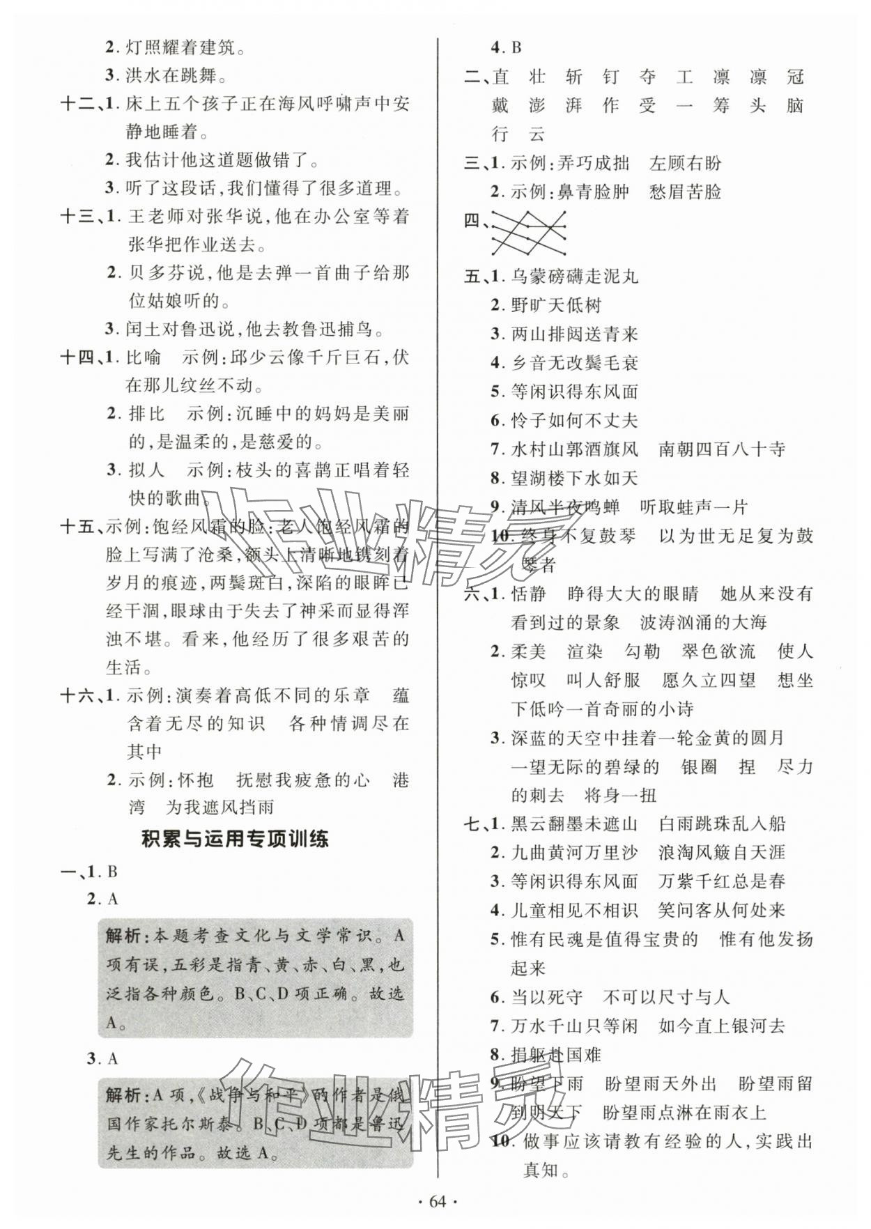 注:目前有些书本章节名称可能整理的还不是很完善,但都是按照顺序排列的,请同学们按照顺序仔细查找。练习册 2025年高分突破创优100六年级语文上册人教版 答案主要是用来给同学们做完题方便对答案用的,请勿直接抄袭。