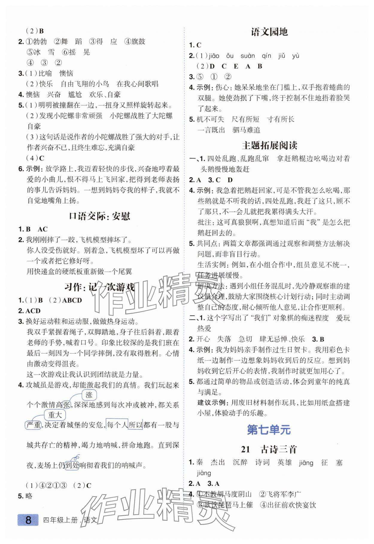 注:目前有些书本章节名称可能整理的还不是很完善,但都是按照顺序排列的,请同学们按照顺序仔细查找。练习册 2025年练出好成绩四年级语文上册人教版 答案主要是用来给同学们做完题方便对答案用的,请勿直接抄袭。