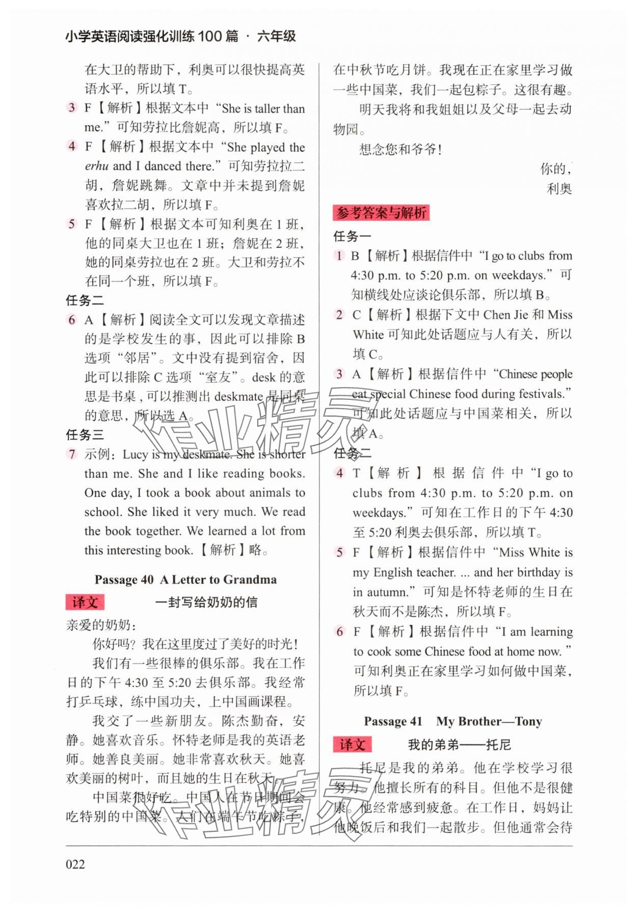 注:目前有些书本章节名称可能整理的还不是很完善,但都是按照顺序排列的,请同学们按照顺序仔细查找。练习册 2025年小学英语阅读强化训练100篇六年级 答案主要是用来给同学们做完题方便对答案用的,请勿直接抄袭。