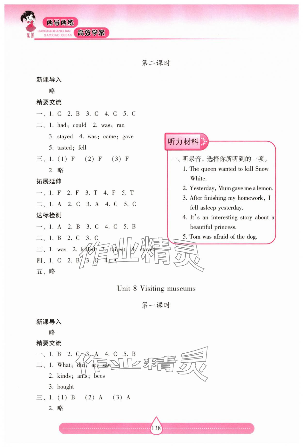 注:目前有些书本章节名称可能整理的还不是很完善,但都是按照顺序排列的,请同学们按照顺序仔细查找。练习册 2025年新课标两导两练高效学案六年级英语上册沪教版 答案主要是用来给同学们做完题方便对答案用的,请勿直接抄袭。