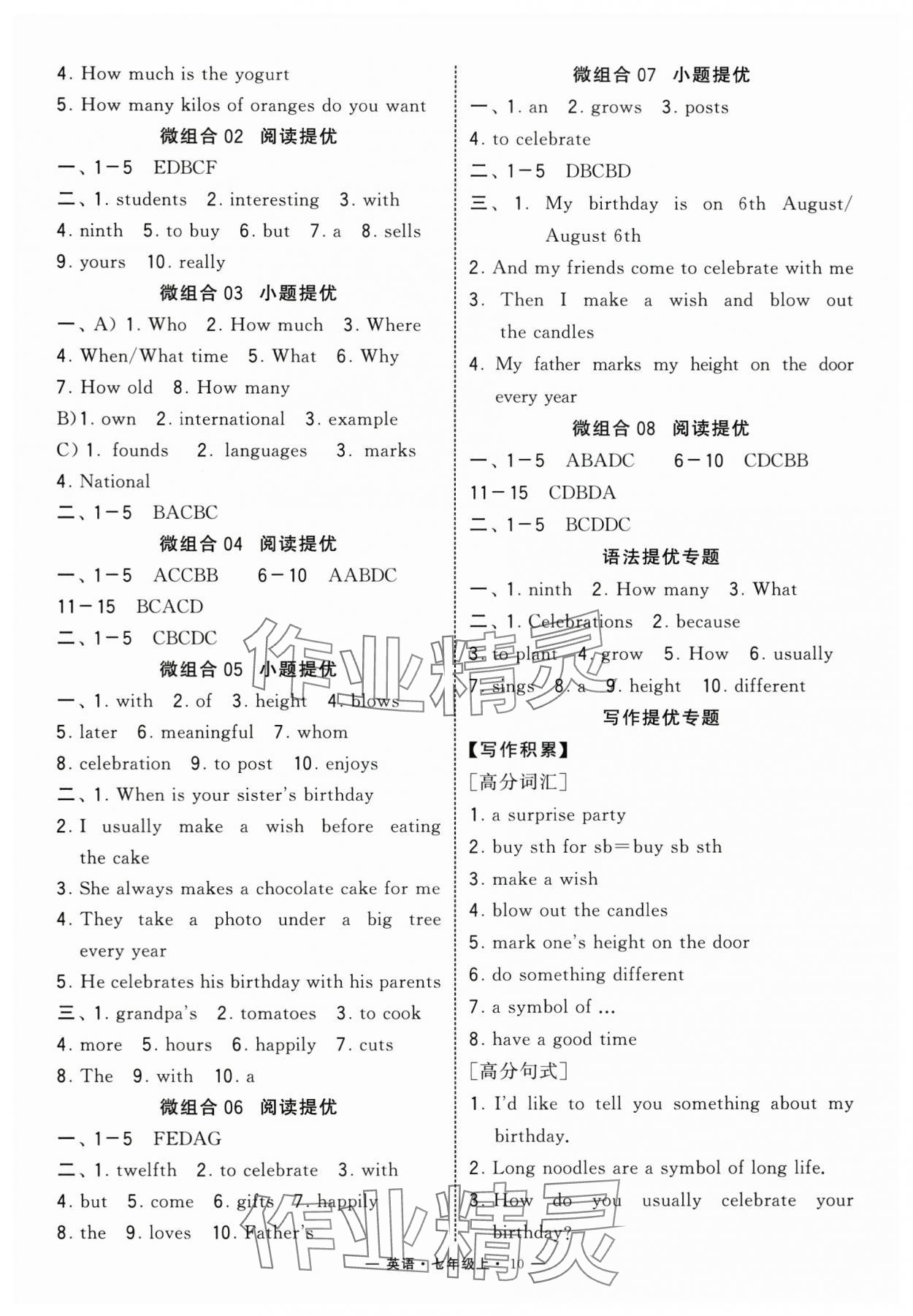 2025年学霸组合训练七年级英语上册人教版济南专版