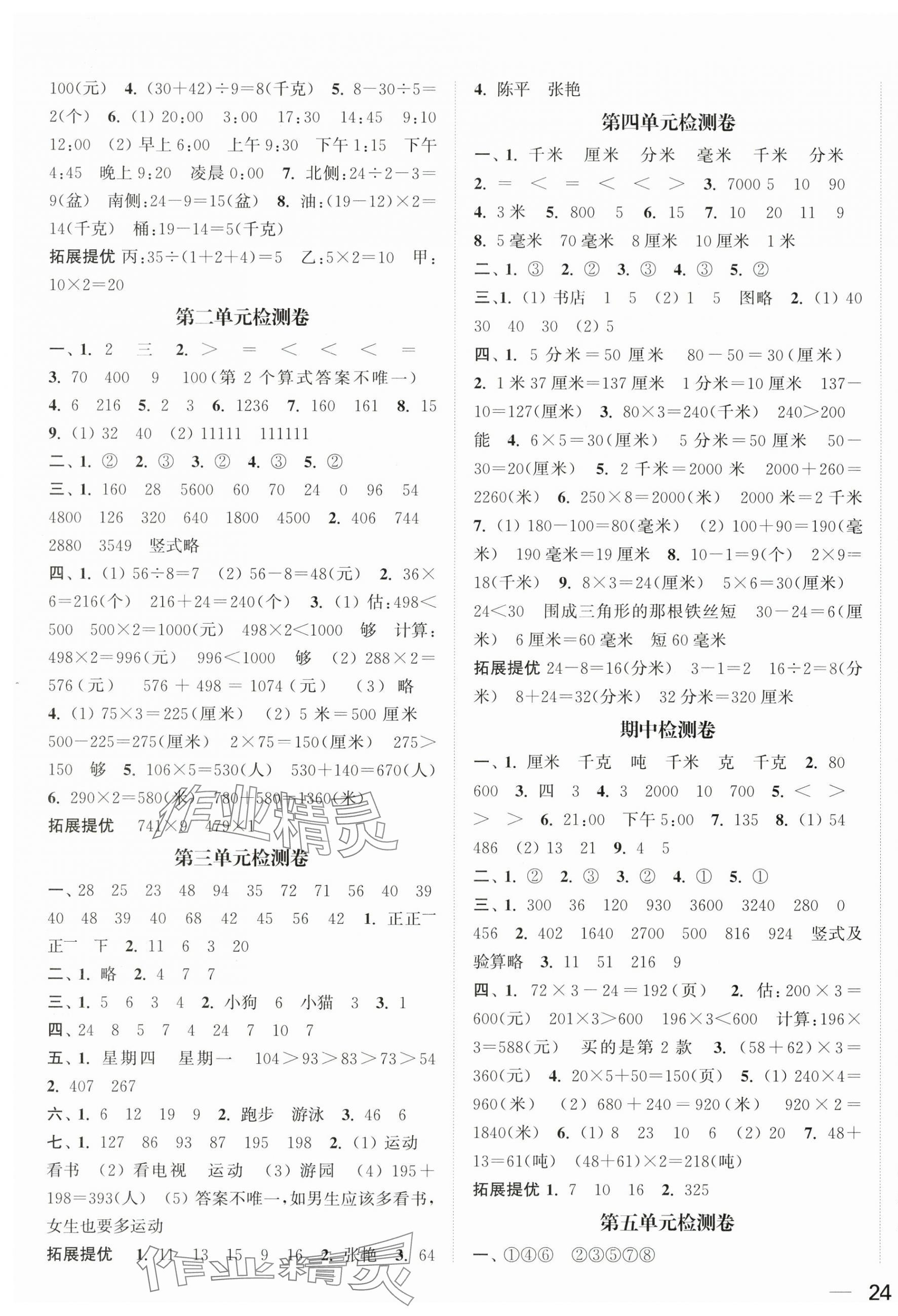 注:目前有些书本章节名称可能整理的还不是很完善,但都是按照顺序排列的,请同学们按照顺序仔细查找。练习册 2025年金色课堂课时作业本三年级数学上册苏教版提优版 答案主要是用来给同学们做完题方便对答案用的,请勿直接抄袭。