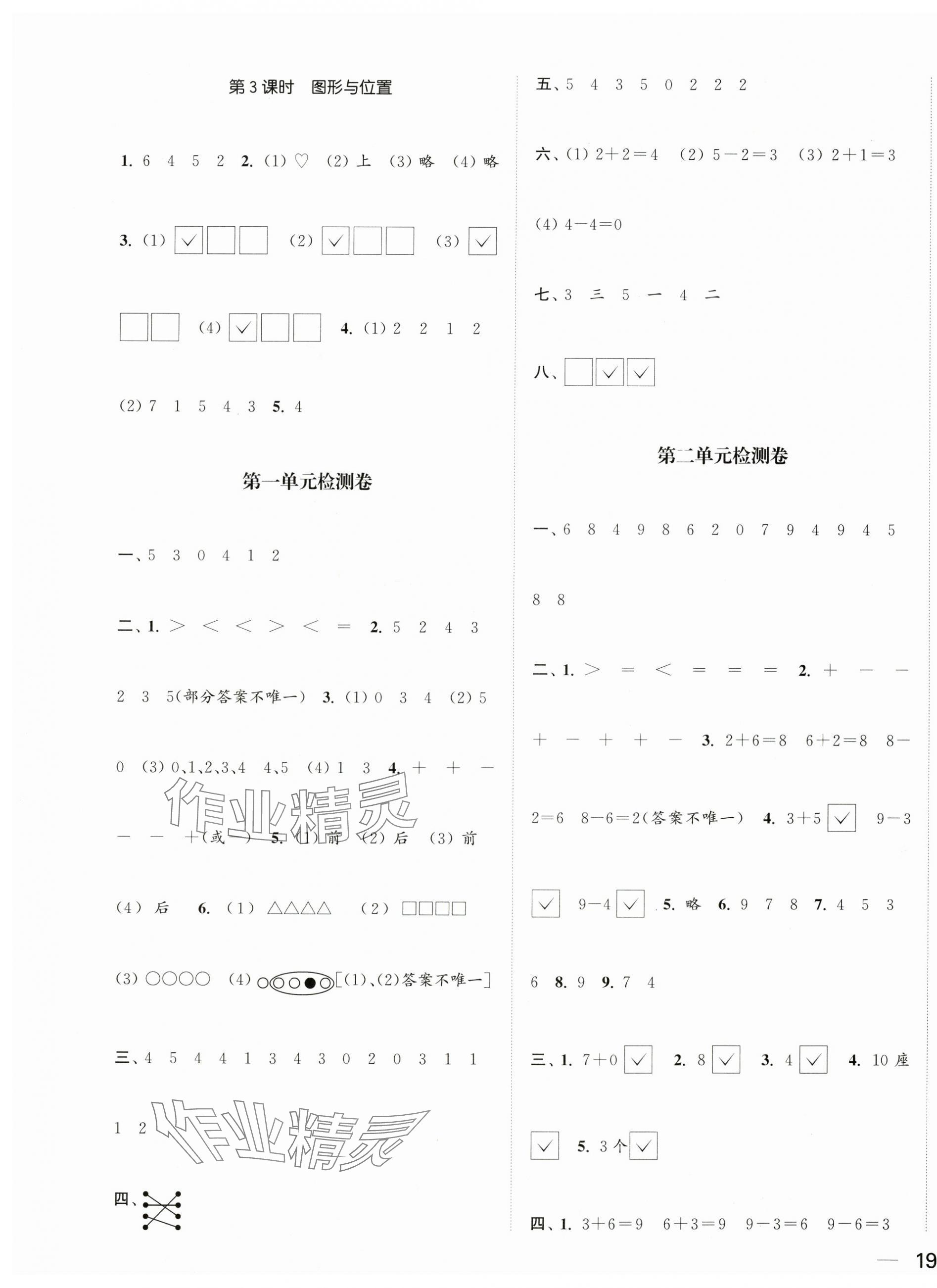 注:目前有些书本章节名称可能整理的还不是很完善,但都是按照顺序排列的,请同学们按照顺序仔细查找。练习册 2025年金色课堂课时作业本一年级数学上册苏教版提优版 答案主要是用来给同学们做完题方便对答案用的,请勿直接抄袭。