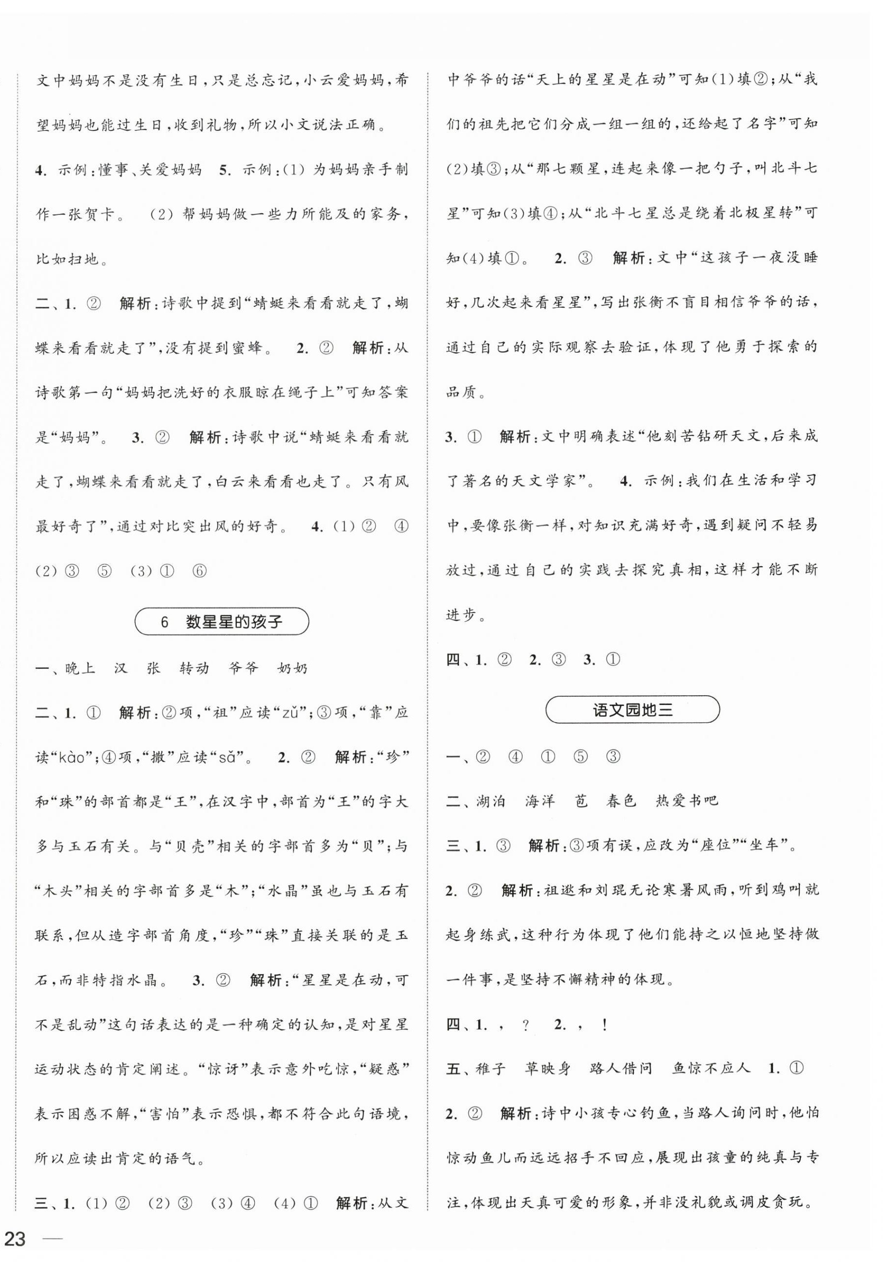 精英家教网> 2025年金色课堂课时作业本二年级语文上册提优版 > 第6页 参考答案