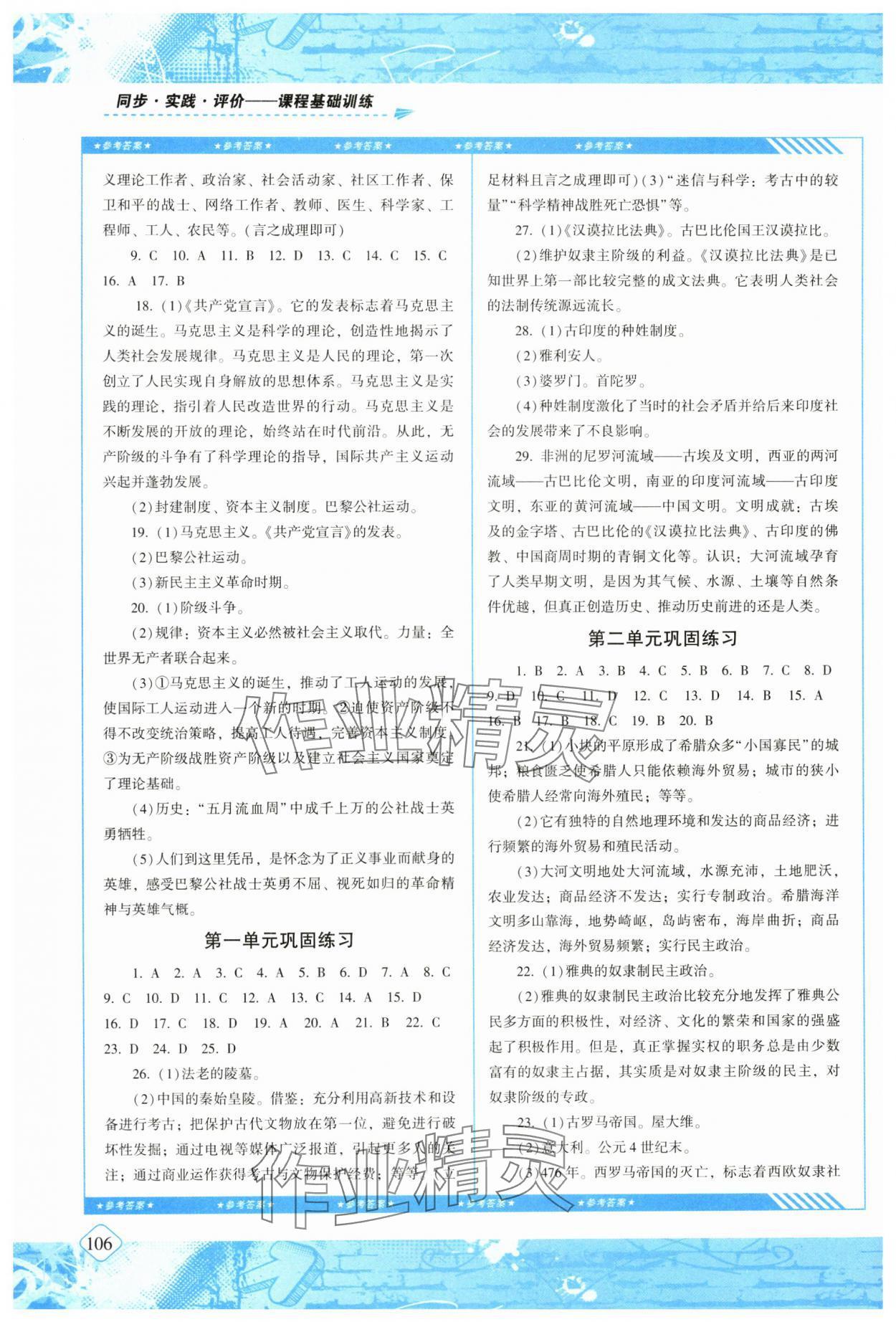 2025年同步实践评价课程基础训练湖南少年儿童出版社九年级历史上册人教版