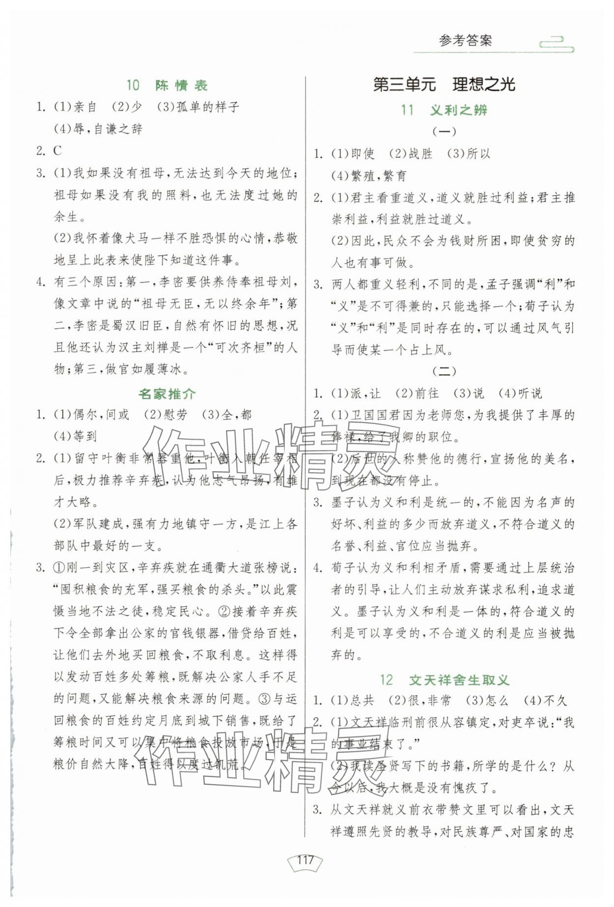 注:目前有些书本章节名称可能整理的还不是很完善,但都是按照顺序排列的,请同学们按照顺序仔细查找。练习册 2025年初中古诗文课外读本九年级全一册 答案主要是用来给同学们做完题方便对答案用的,请勿直接抄袭。