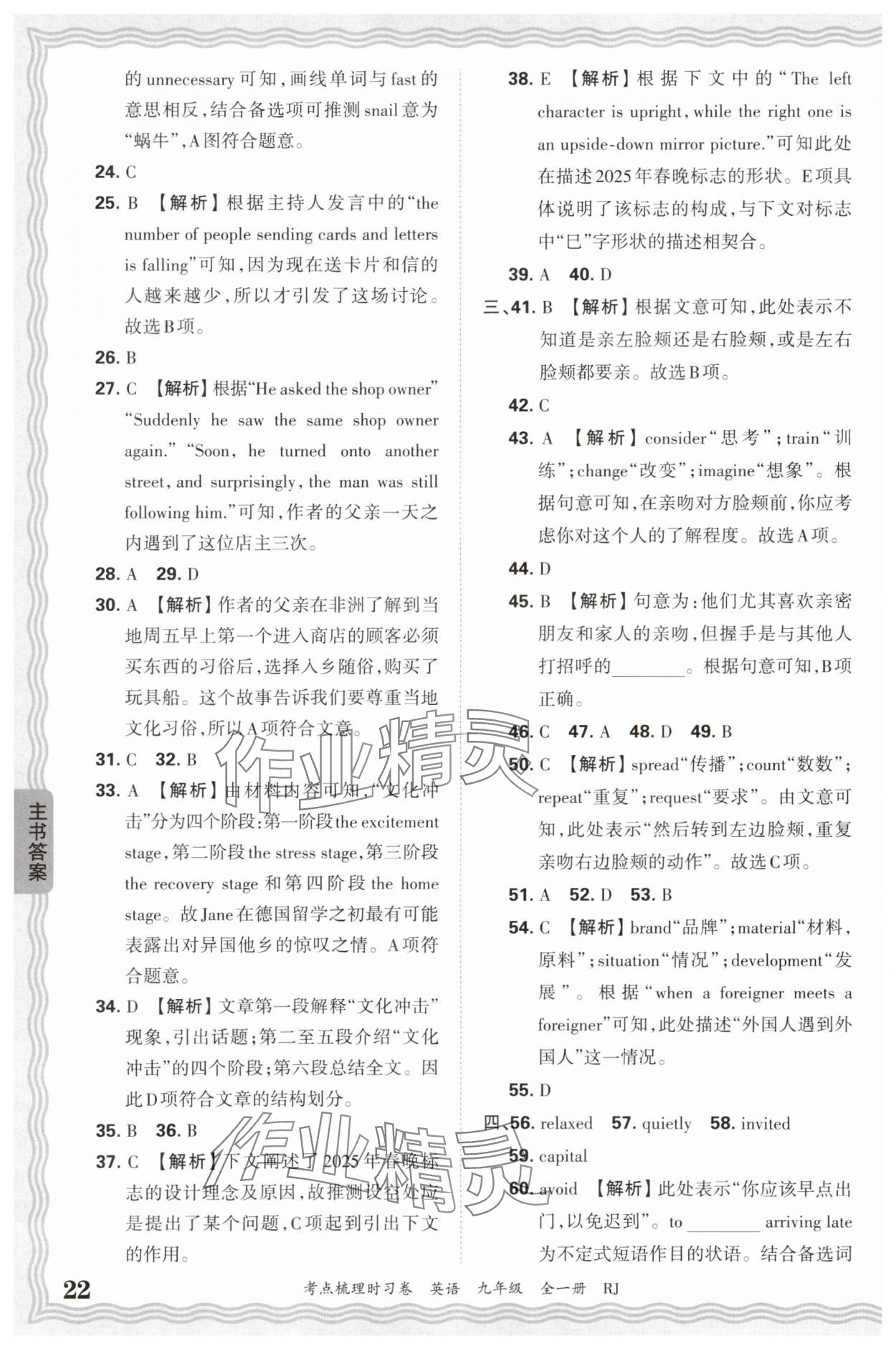 注:目前有些书本章节名称可能整理的还不是很完善,但都是按照顺序排列的,请同学们按照顺序仔细查找。练习册 2025年王朝霞考点梳理时习卷九年级英语全一册人教版 答案主要是用来给同学们做完题方便对答案用的,请勿直接抄袭。