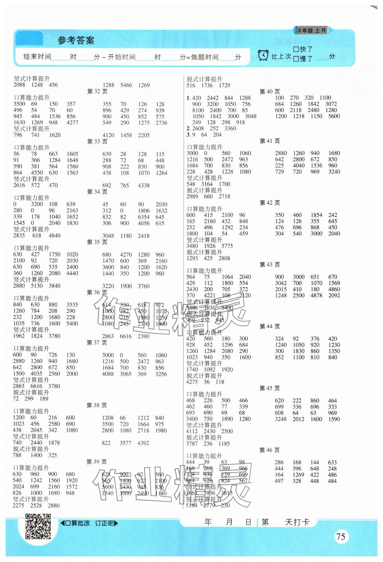 注:目前有些书本章节名称可能整理的还不是很完善,但都是按照顺序排列的,请同学们按照顺序仔细查找。练习册 2025年优佳好口算计算能力提升三年级数学上册人教版 答案主要是用来给同学们做完题方便对答案用的,请勿直接抄袭。