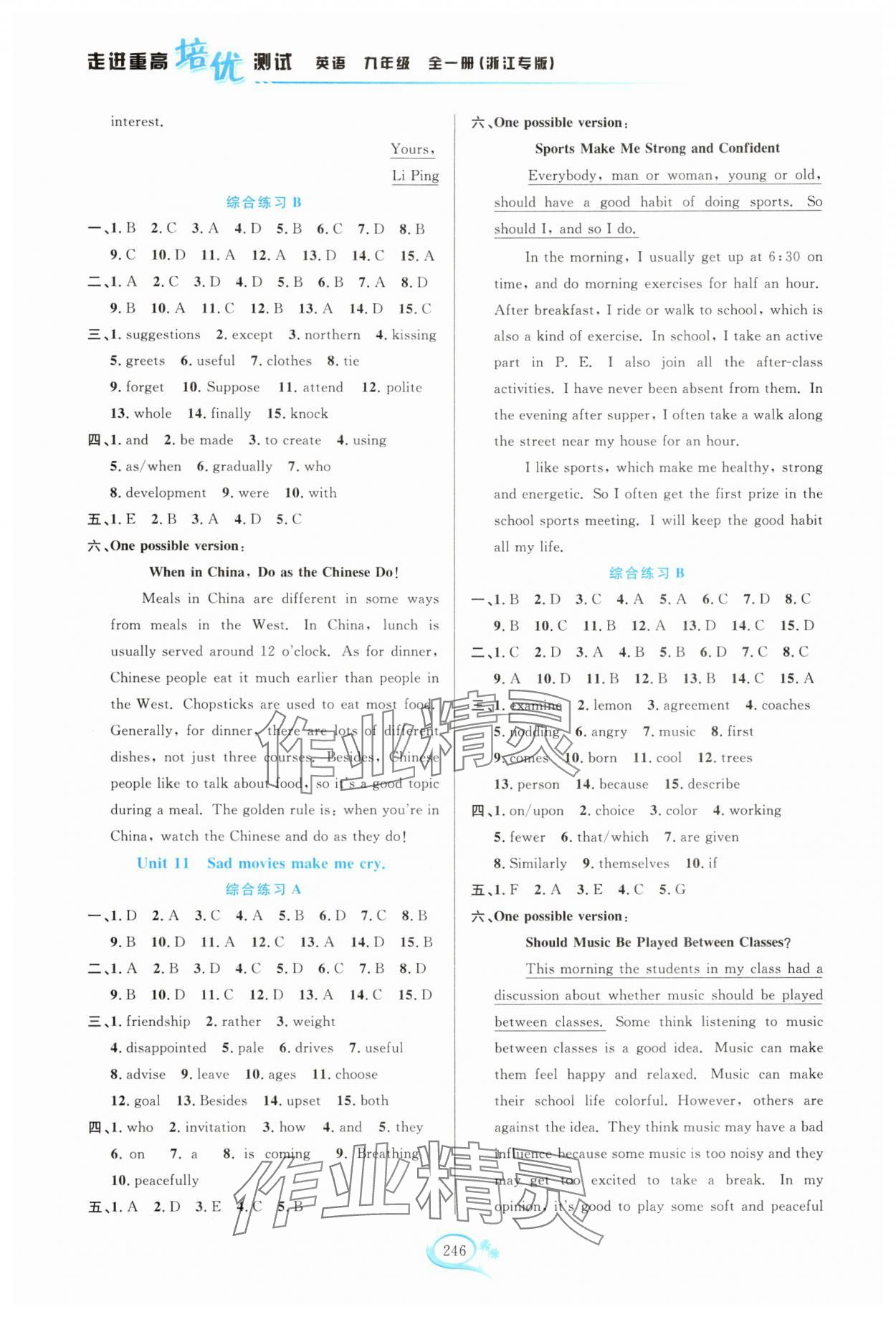 注:目前有些书本章节名称可能整理的还不是很完善,但都是按照顺序排列的,请同学们按照顺序仔细查找。练习册 2025年走进重高培优测试九年级英语全一册人教版浙江专版 答案主要是用来给同学们做完题方便对答案用的,请勿直接抄袭。