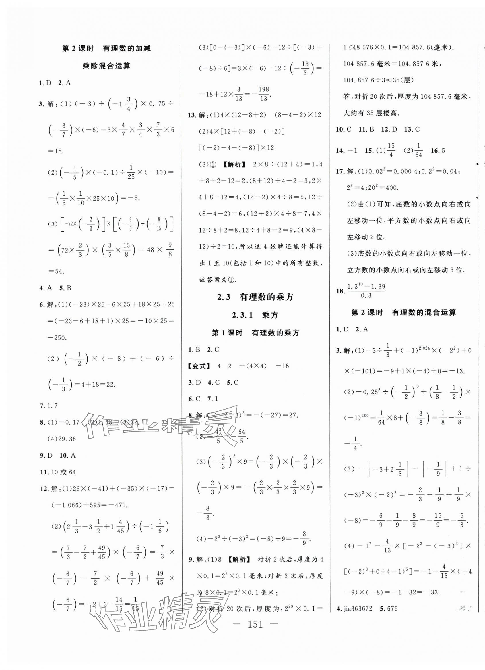 精英家教网> 2025年新起点作业本七年级数学上册人教版 > 第7页 参考答案