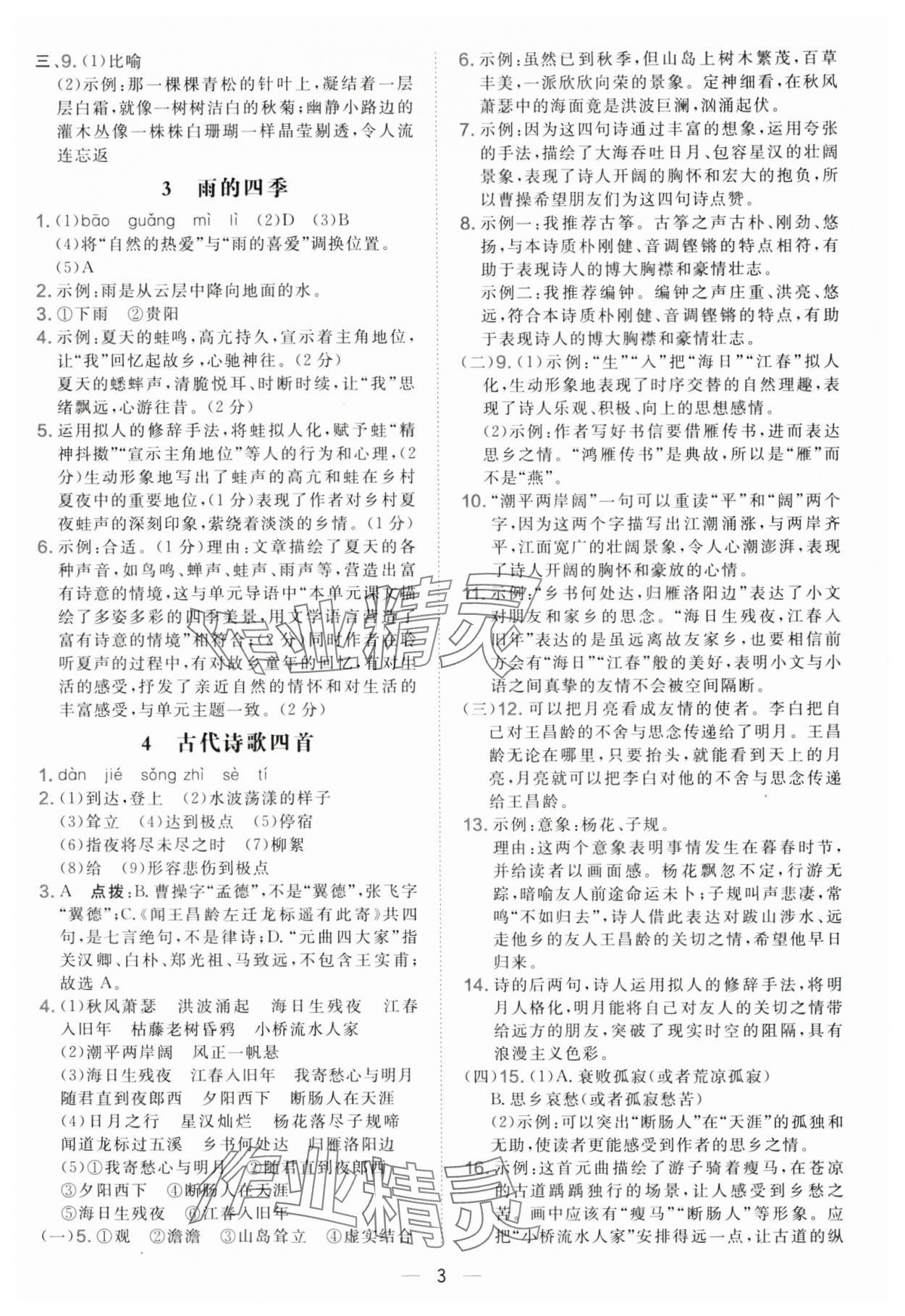 精英家教网> 2025年点拨训练七年级语文上册人教版 > 第3页 参考答案