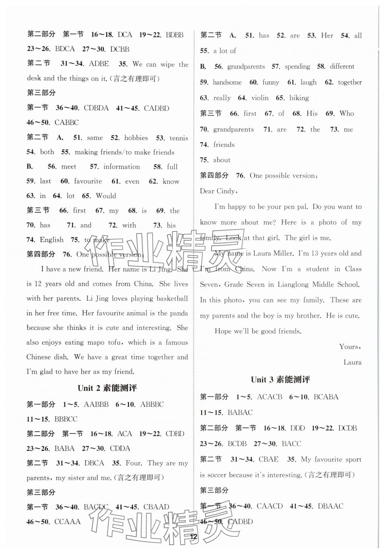 精英家教网> 2025年通城学典课时作业本七年级英语上册人教版浙江专版 > 第12页 参考答案