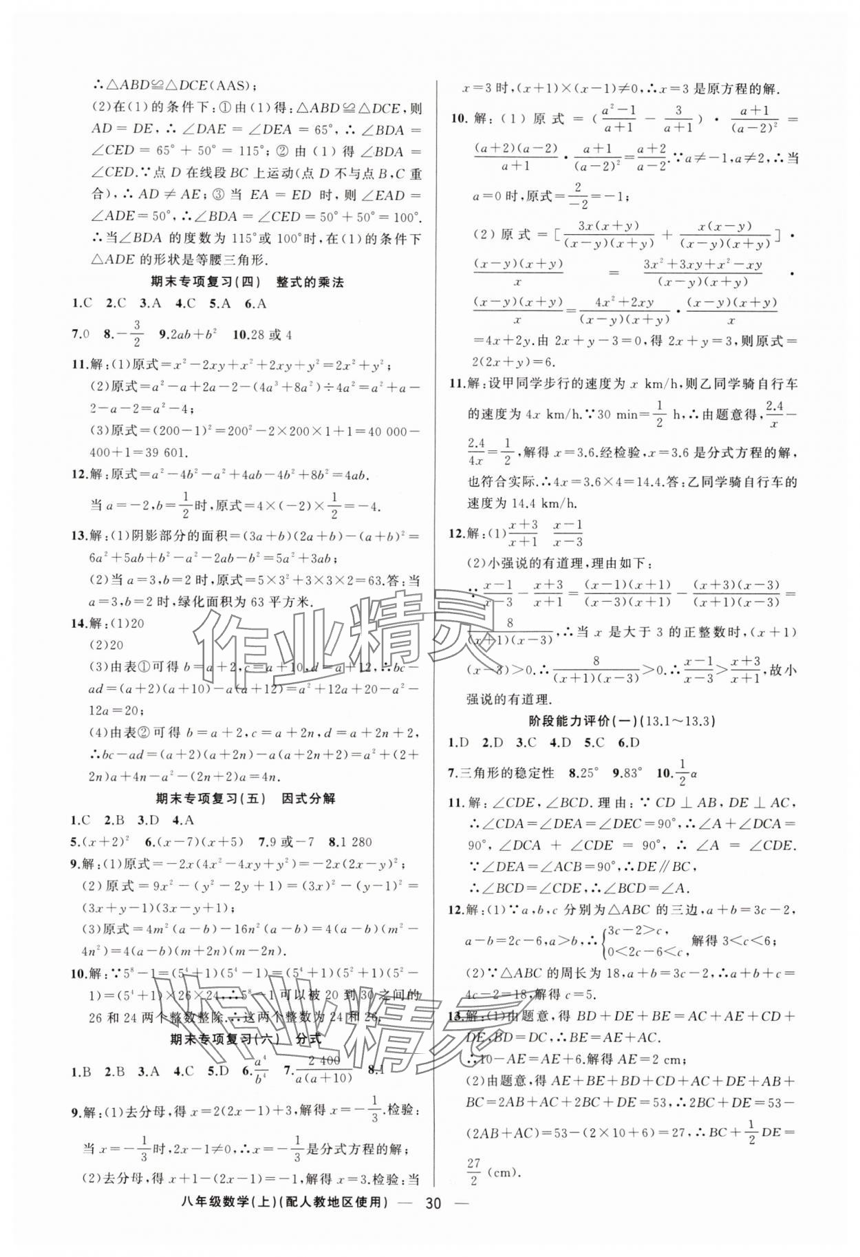 注:目前有些书本章节名称可能整理的还不是很完善,但都是按照顺序排列的,请同学们按照顺序仔细查找。练习册 2025年黄冈金牌之路练闯考八年级数学上册人教版 答案主要是用来给同学们做完题方便对答案用的,请勿直接抄袭。