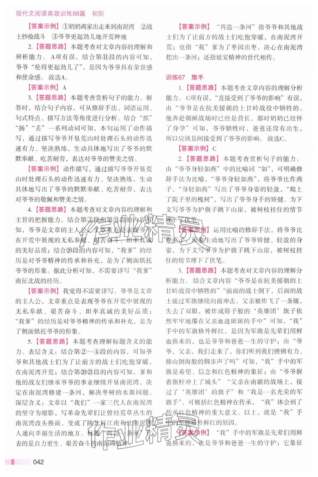 注:目前有些书本章节名称可能整理的还不是很完善,但都是按照顺序排列的,请同学们按照顺序仔细查找。练习册 2025年现代文阅读高效训练88篇七年级语文全一册人教版 答案主要是用来给同学们做完题方便对答案用的,请勿直接抄袭。