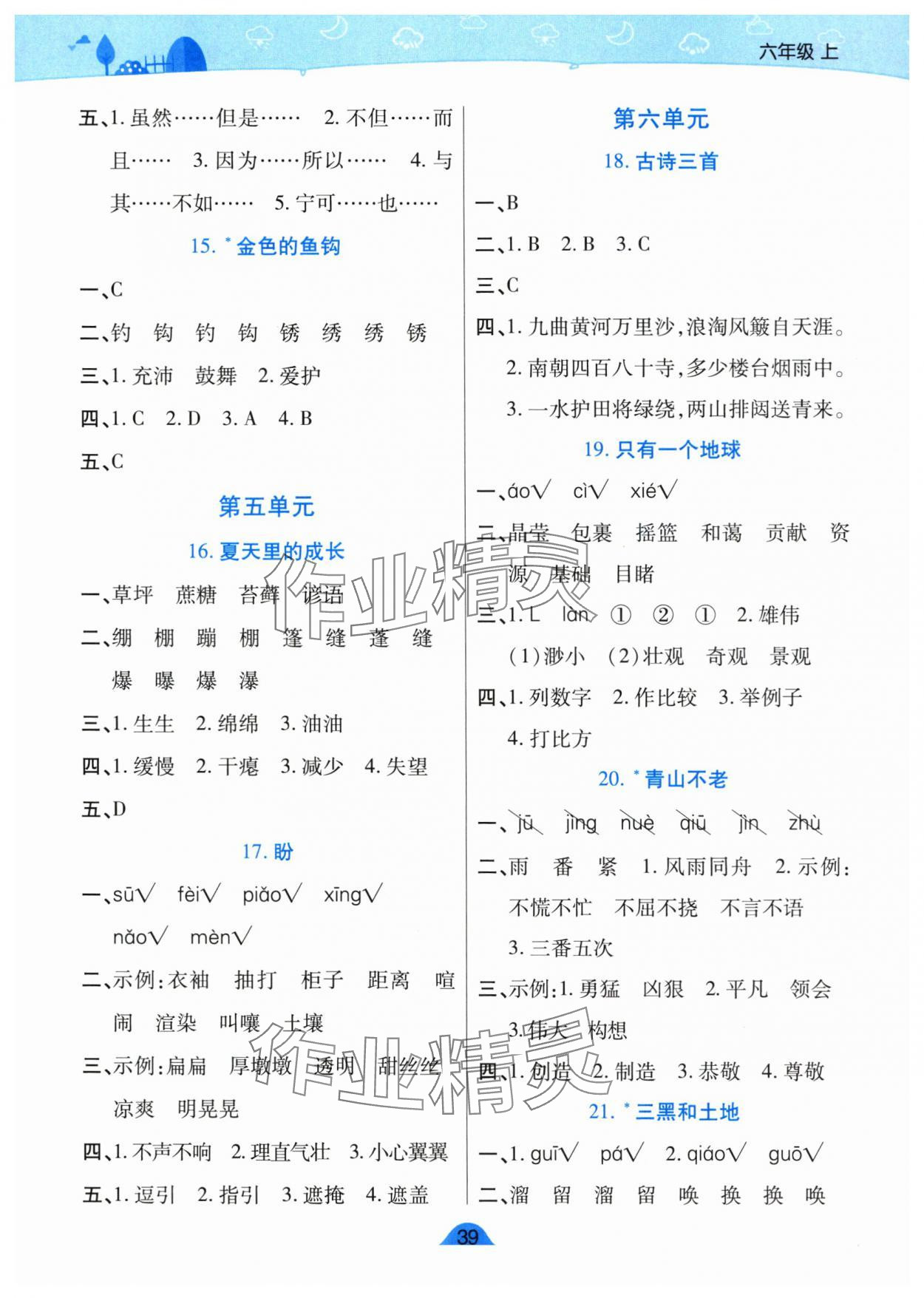 注:目前有些书本章节名称可能整理的还不是很完善,但都是按照顺序排列的,请同学们按照顺序仔细查找。练习册 2025年黄冈同步训练六年级语文上册人教版 答案主要是用来给同学们做完题方便对答案用的,请勿直接抄袭。