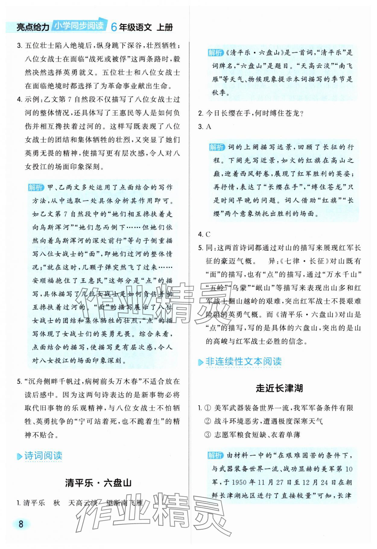 2025年亮点给力同步阅读六年级语文上册人教版 参考答案第8页