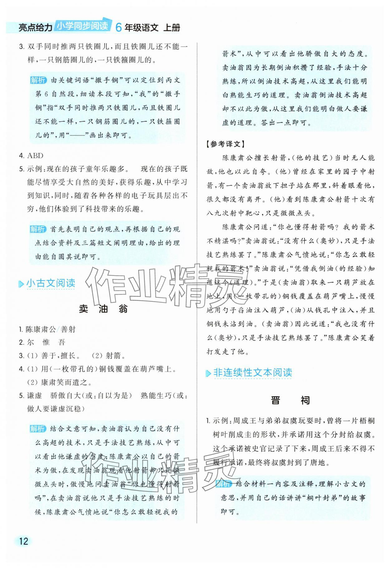 2025年亮点给力同步阅读六年级语文上册人教版 参考答案第12页