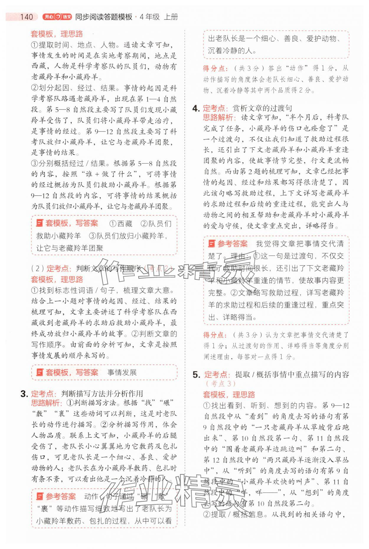 2025年开心语文阅读理解答题模版四年级语文上册人教版