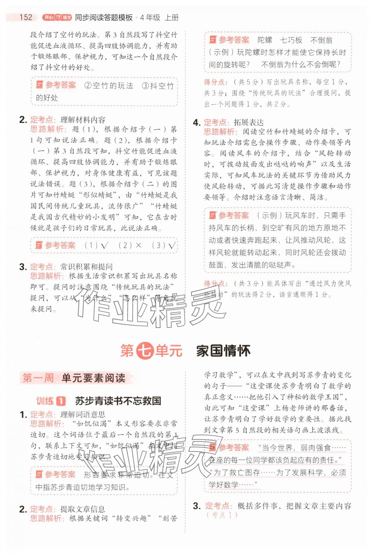 2025年开心语文阅读理解答题模版四年级语文上册人教版
