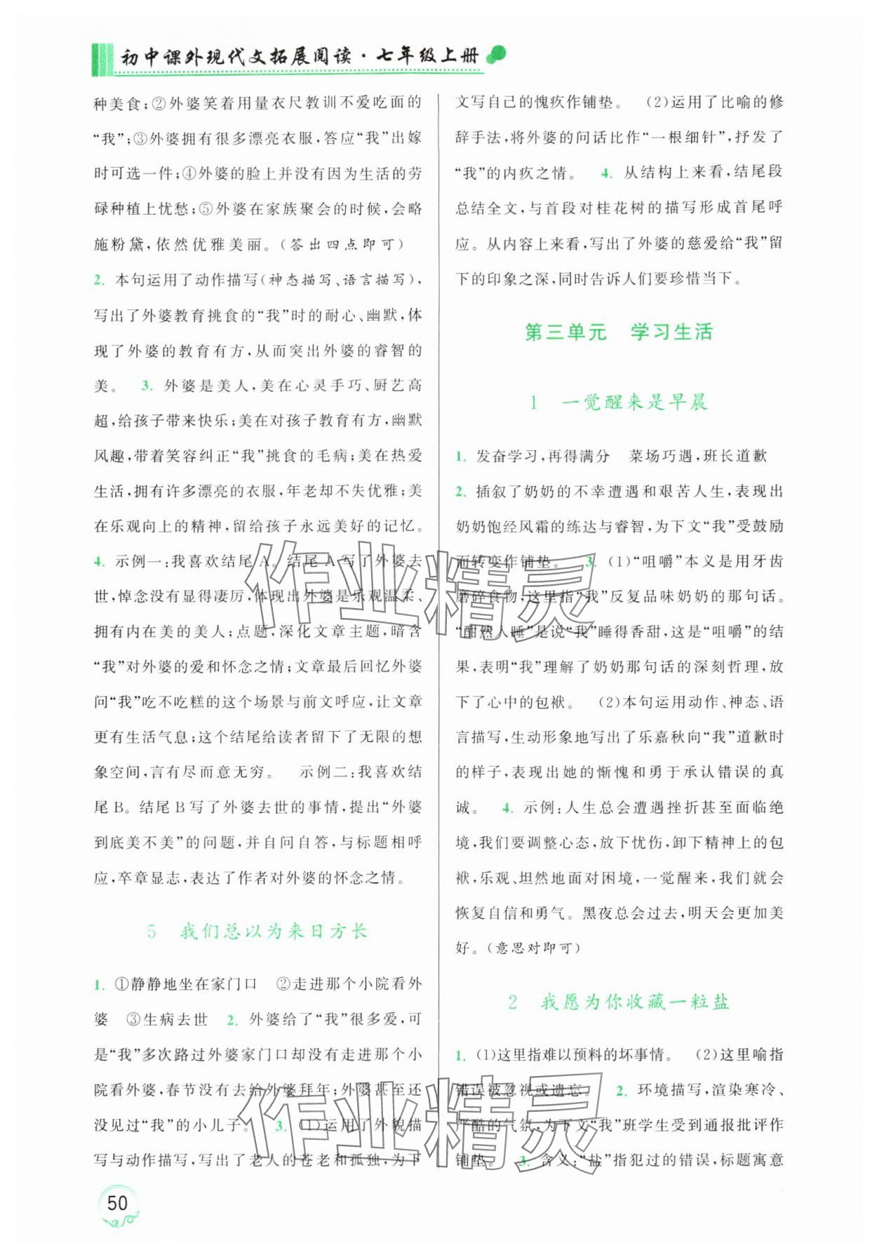 精英家教网> 2025年阅读计划初中课外现代文拓展阅读七年级语文上册人教版 > 第4页 参考答案