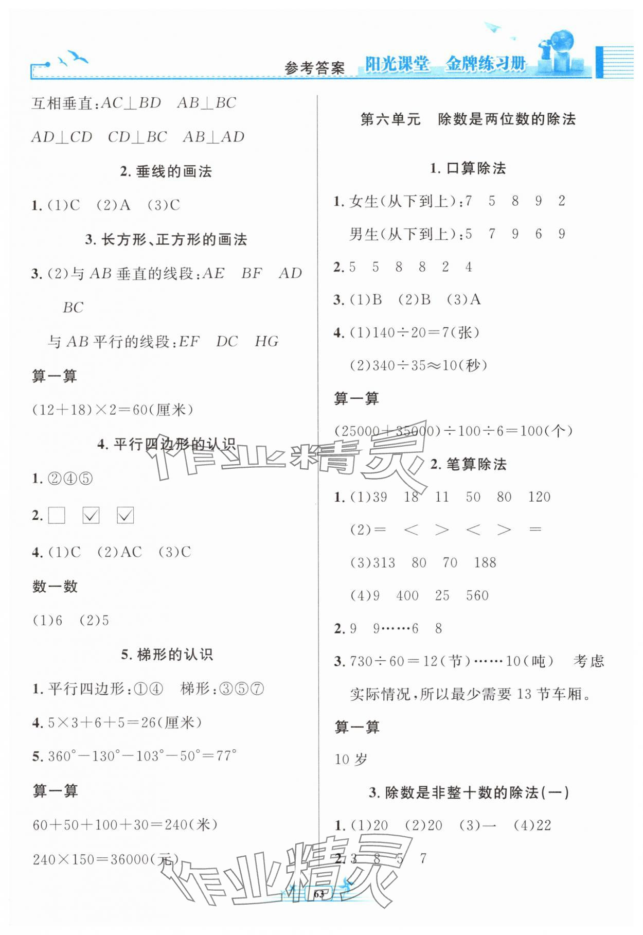 注:目前有些书本章节名称可能整理的还不是很完善,但都是按照顺序排列的,请同学们按照顺序仔细查找。练习册 2025年阳光课堂金牌练习册四年级数学上册人教版福建专版 答案主要是用来给同学们做完题方便对答案用的,请勿直接抄袭。