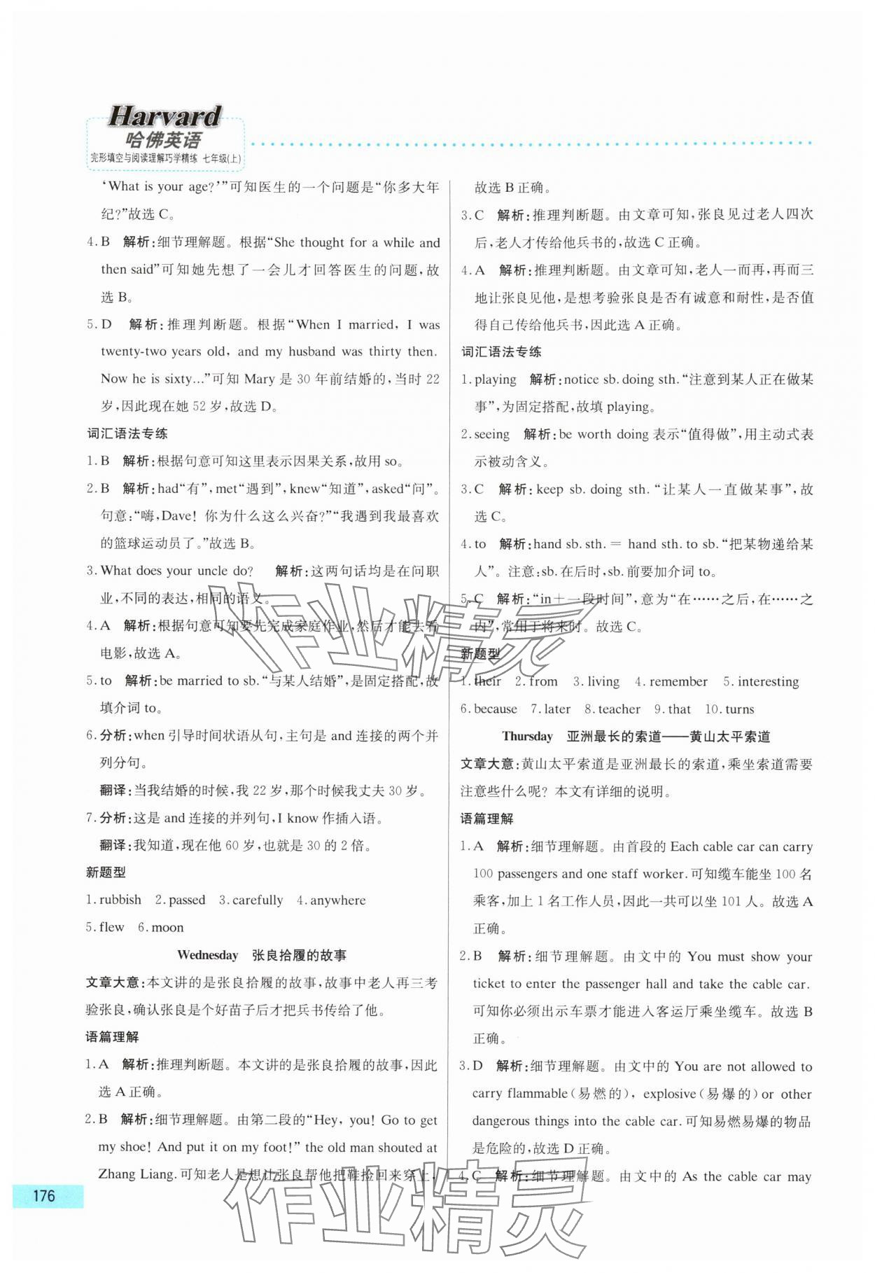 2025年哈佛英语完形填空与阅读理解巧学精练七年级上册