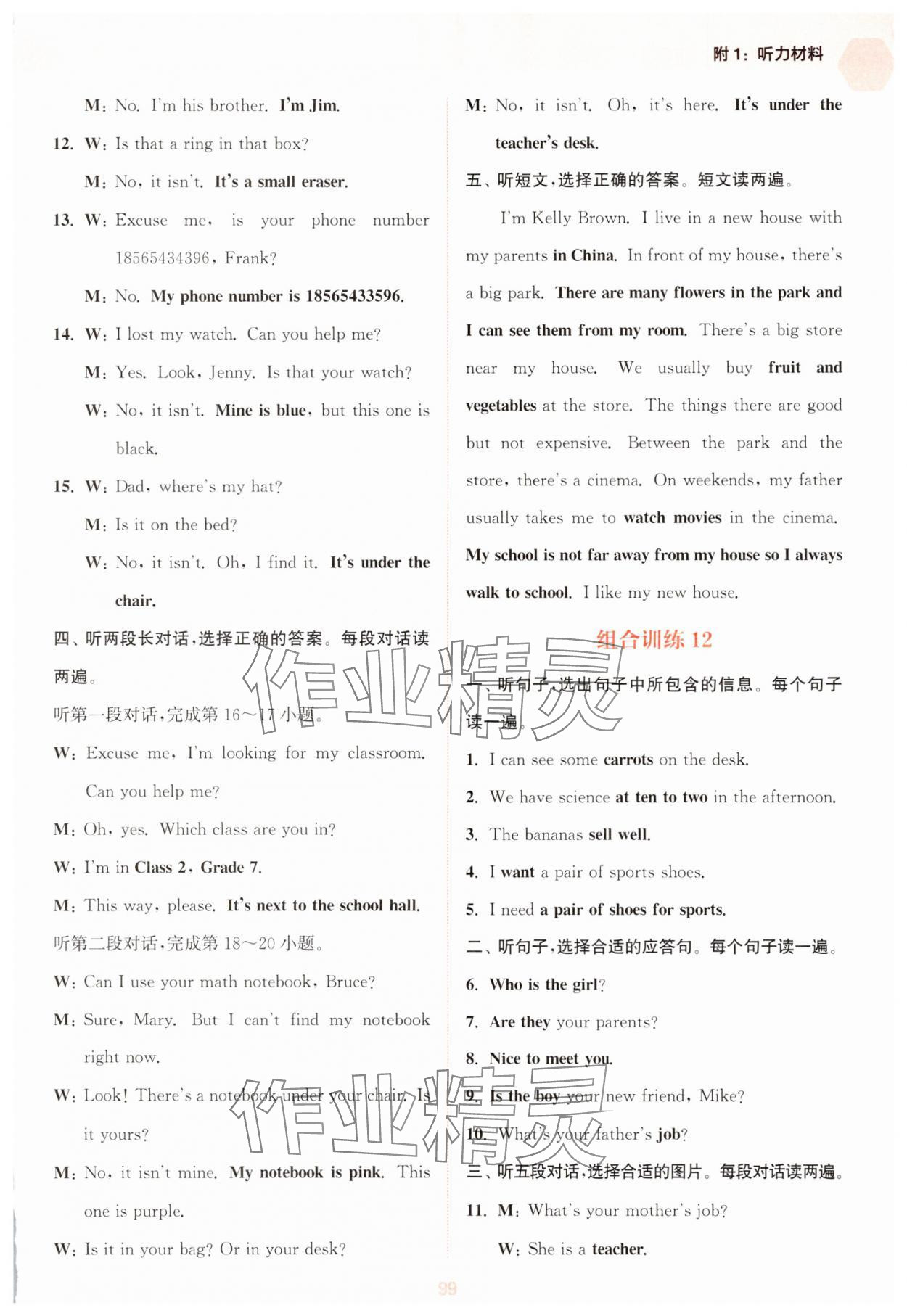 2025年通城学典初中英语听力组合训练七年级上册人教版