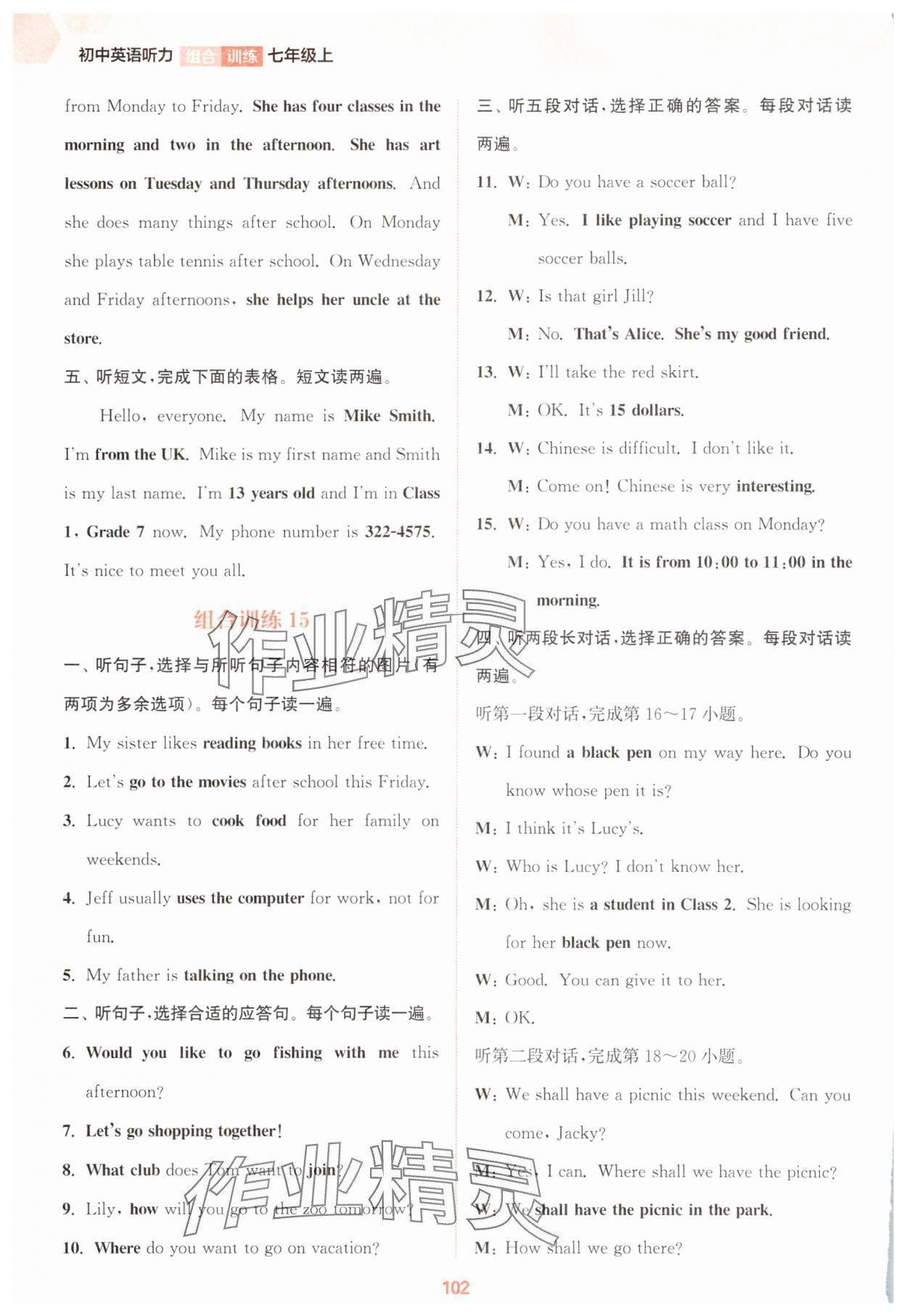 2025年通城学典初中英语听力组合训练七年级上册人教版