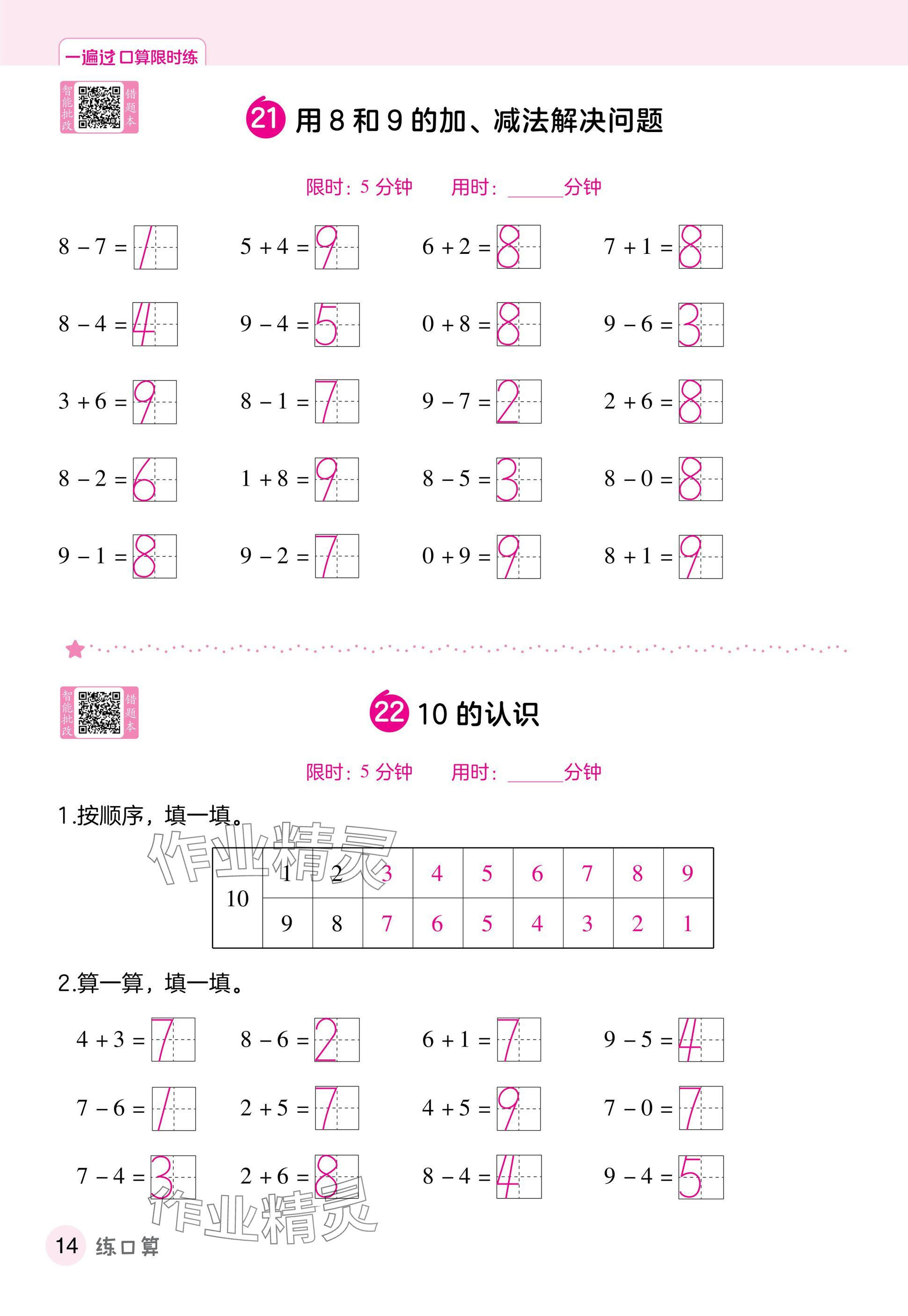 注:目前有些书本章节名称可能整理的还不是很完善,但都是按照顺序排列的,请同学们按照顺序仔细查找。练习册 2025年一遍过一年级数学上册人教版 答案主要是用来给同学们做完题方便对答案用的,请勿直接抄袭。