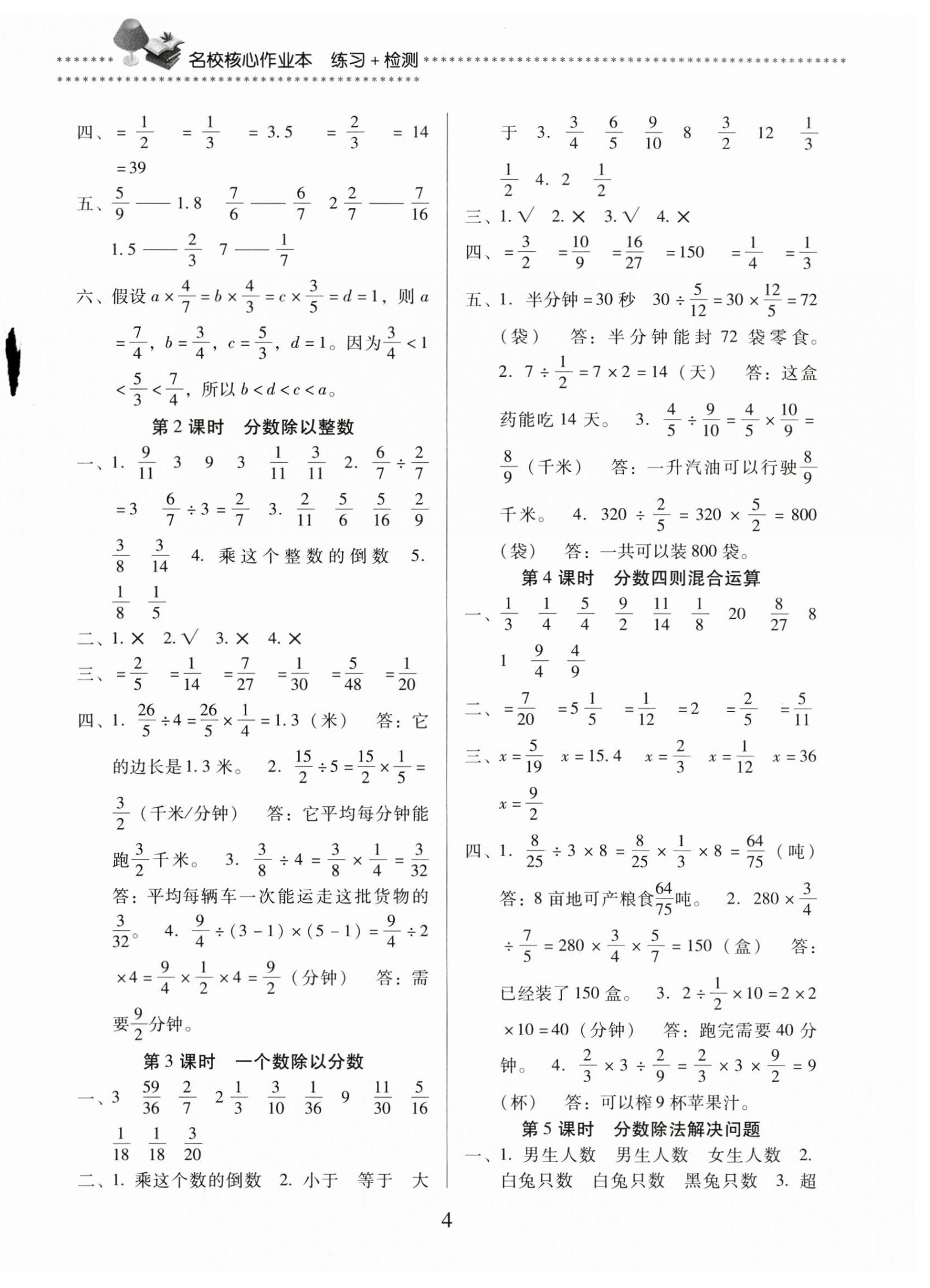 2025年名校核心作业本练习加检测六年级数学上册人教版 第4页