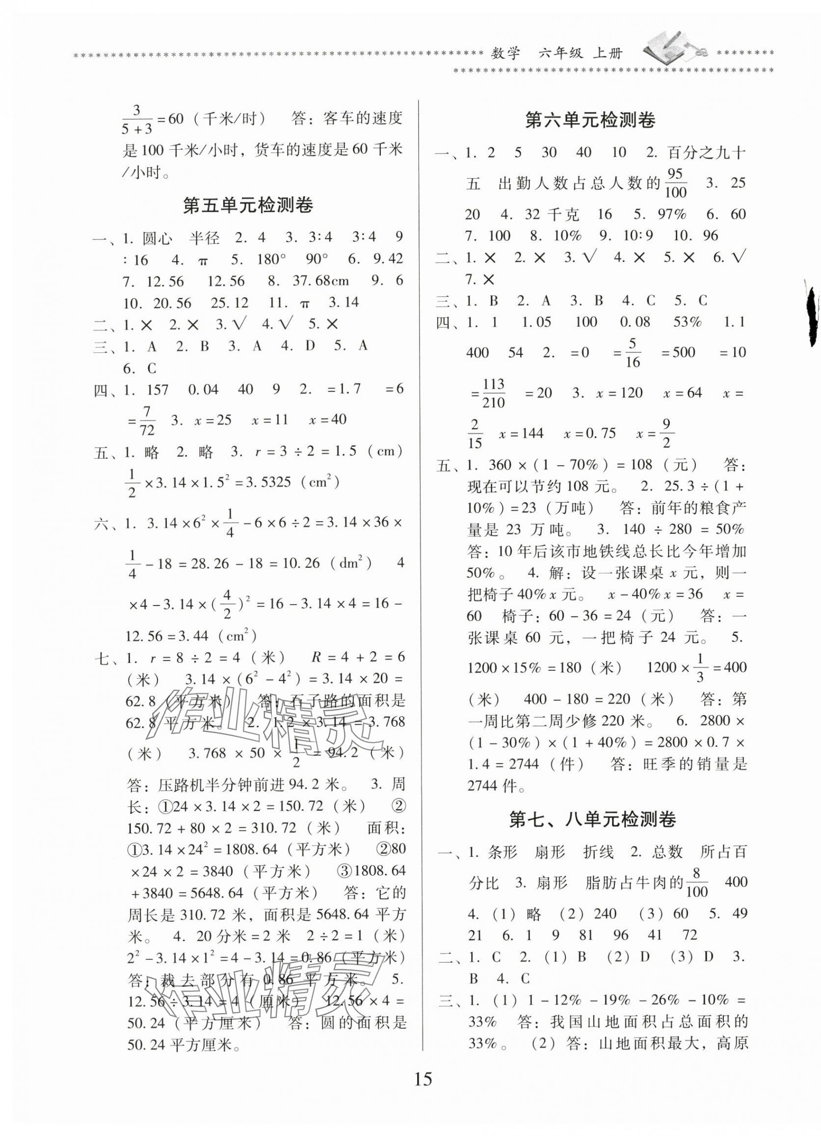 注:目前有些书本章节名称可能整理的还不是很完善,但都是按照顺序排列的,请同学们按照顺序仔细查找。练习册 2025年名校核心作业本练习加检测六年级数学上册人教版 答案主要是用来给同学们做完题方便对答案用的,请勿直接抄袭。