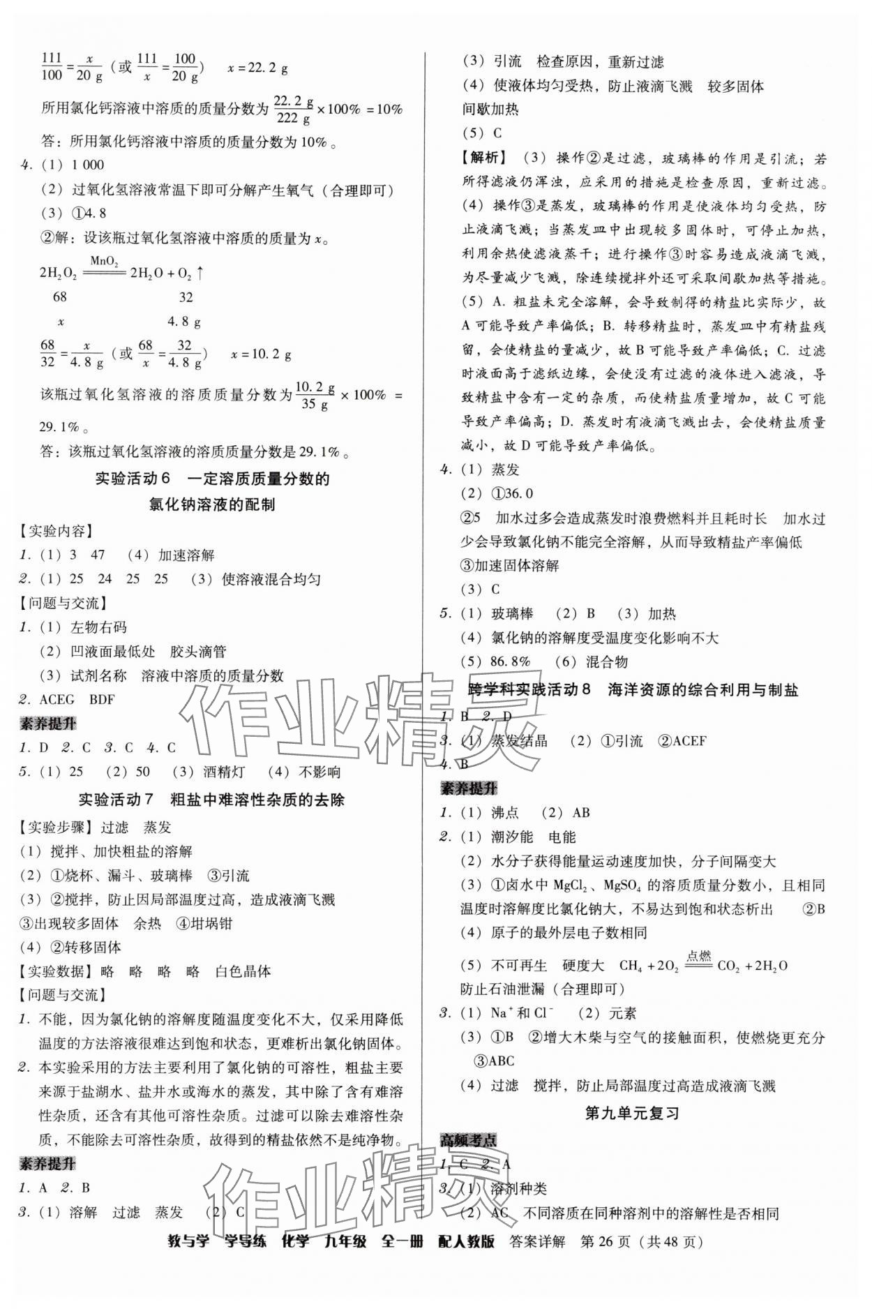 注:目前有些书本章节名称可能整理的还不是很完善,但都是按照顺序排列的,请同学们按照顺序仔细查找。练习册 2025年教与学学导练九年级化学全一册人教版 答案主要是用来给同学们做完题方便对答案用的,请勿直接抄袭。