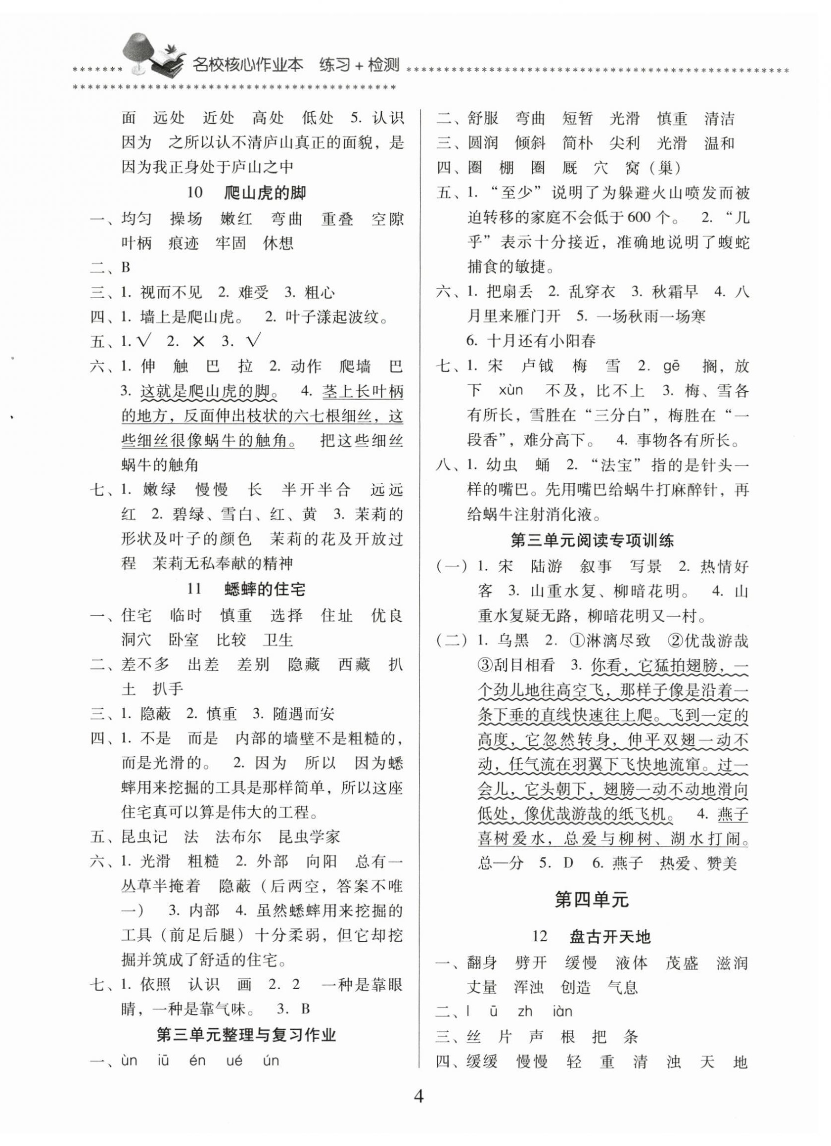 注:目前有些书本章节名称可能整理的还不是很完善,但都是按照顺序排列的,请同学们按照顺序仔细查找。练习册 2025年名校核心作业本练习加检测四年级语文上册人教版 答案主要是用来给同学们做完题方便对答案用的,请勿直接抄袭。