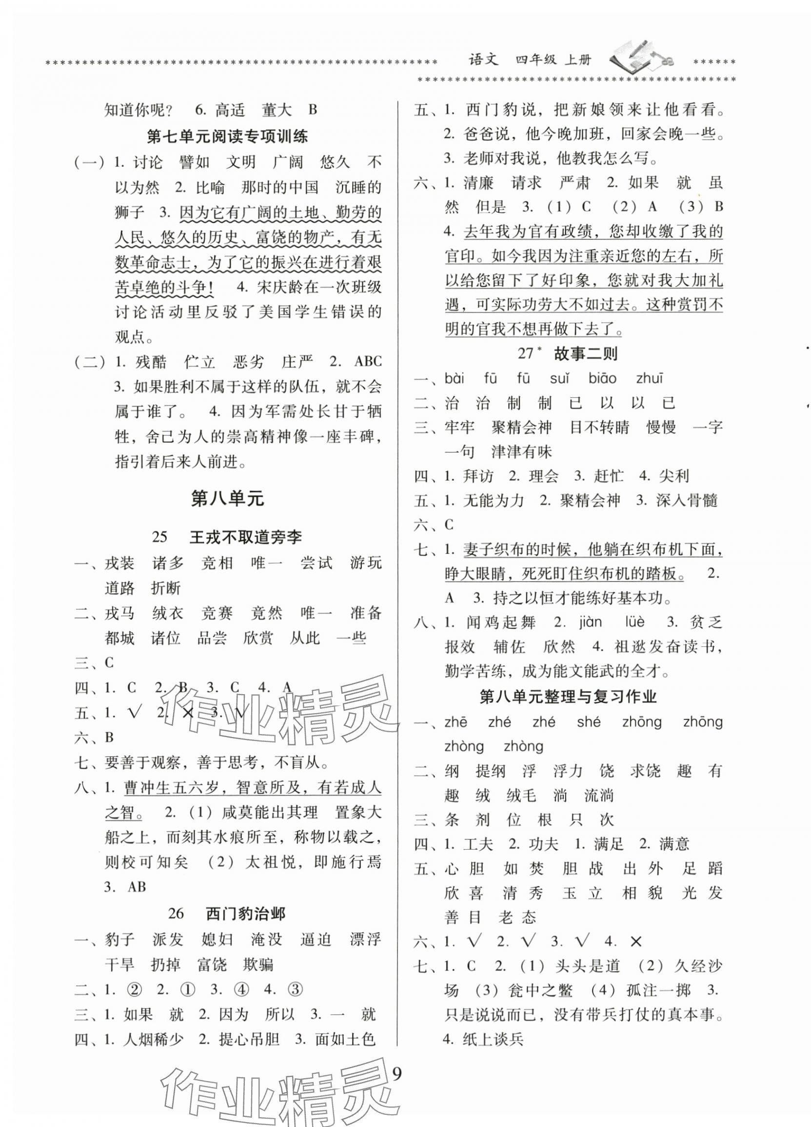 注:目前有些书本章节名称可能整理的还不是很完善,但都是按照顺序排列的,请同学们按照顺序仔细查找。练习册 2025年名校核心作业本练习加检测四年级语文上册人教版 答案主要是用来给同学们做完题方便对答案用的,请勿直接抄袭。