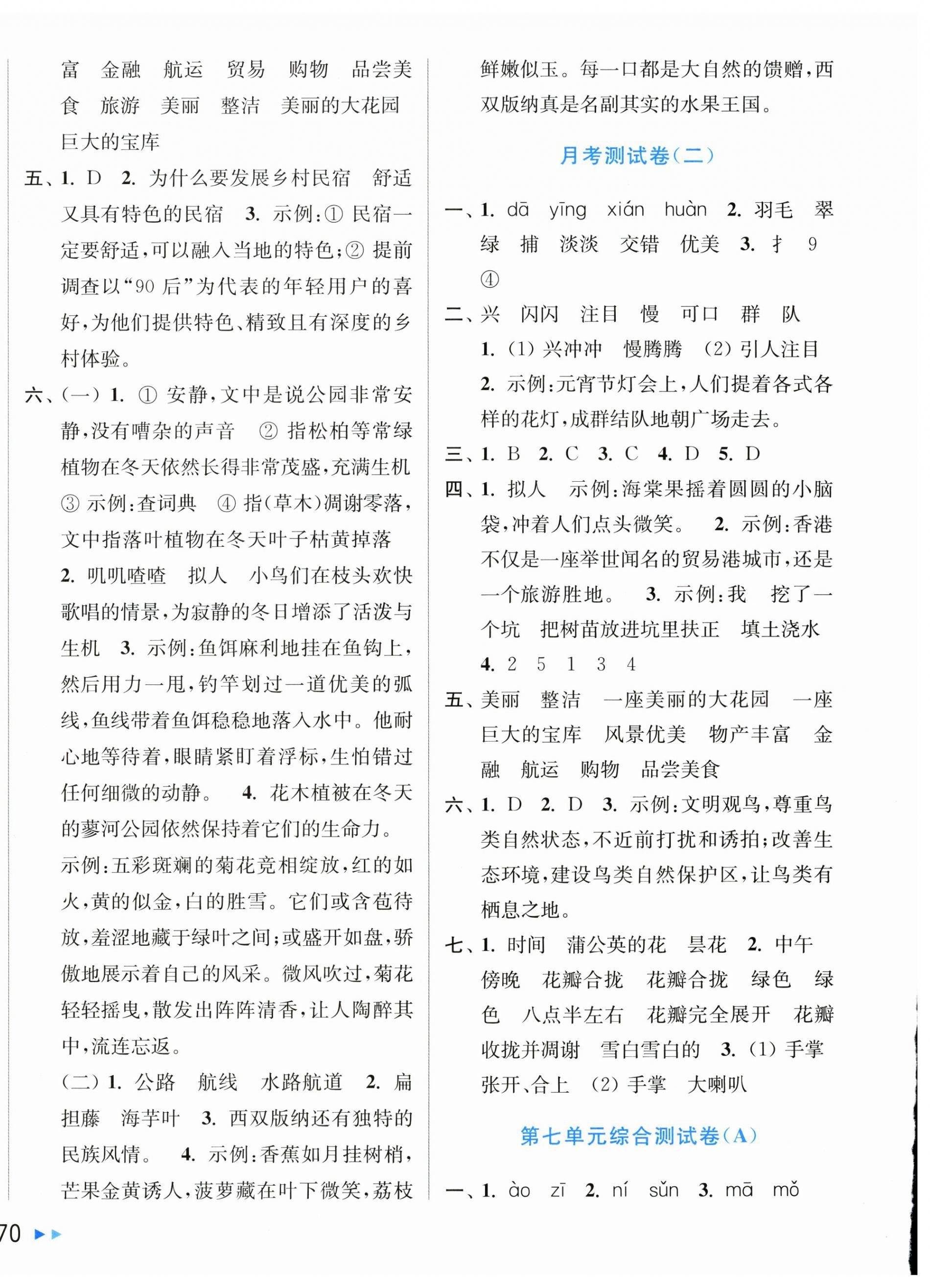 注:目前有些书本章节名称可能整理的还不是很完善,但都是按照顺序排列的,请同学们按照顺序仔细查找。练习册 2025年亮点给力大试卷三年级语文上册人教版 答案主要是用来给同学们做完题方便对答案用的,请勿直接抄袭。