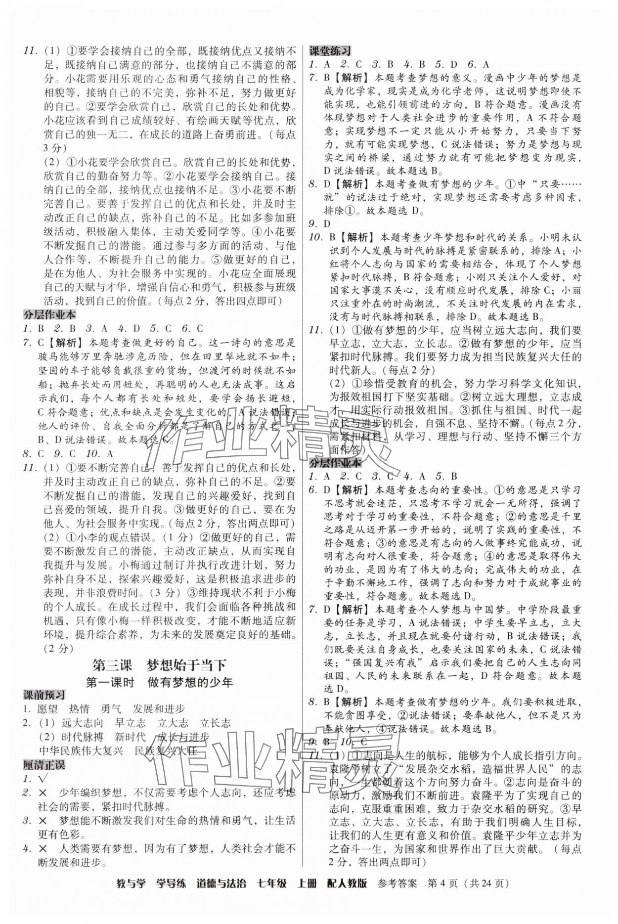 精英家教网> 2025年教与学学导练七年级道德与法治上册人教版 > 第4页 参考答案