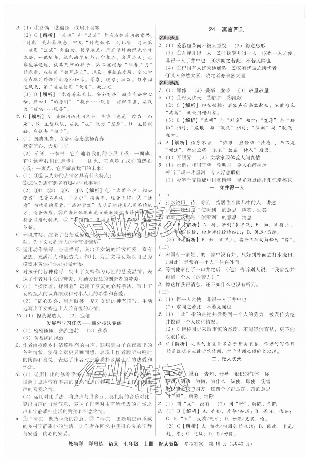 注:目前有些书本章节名称可能整理的还不是很完善,但都是按照顺序排列的,请同学们按照顺序仔细查找。练习册 2025年教与学学导练七年级语文上册人教版 答案主要是用来给同学们做完题方便对答案用的,请勿直接抄袭。