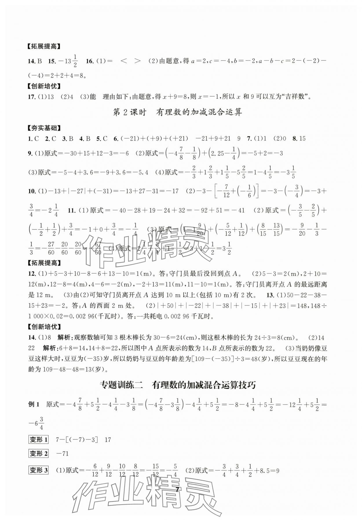 2025年习题e百课时训练七年级数学上册浙教版 参考答案第7页