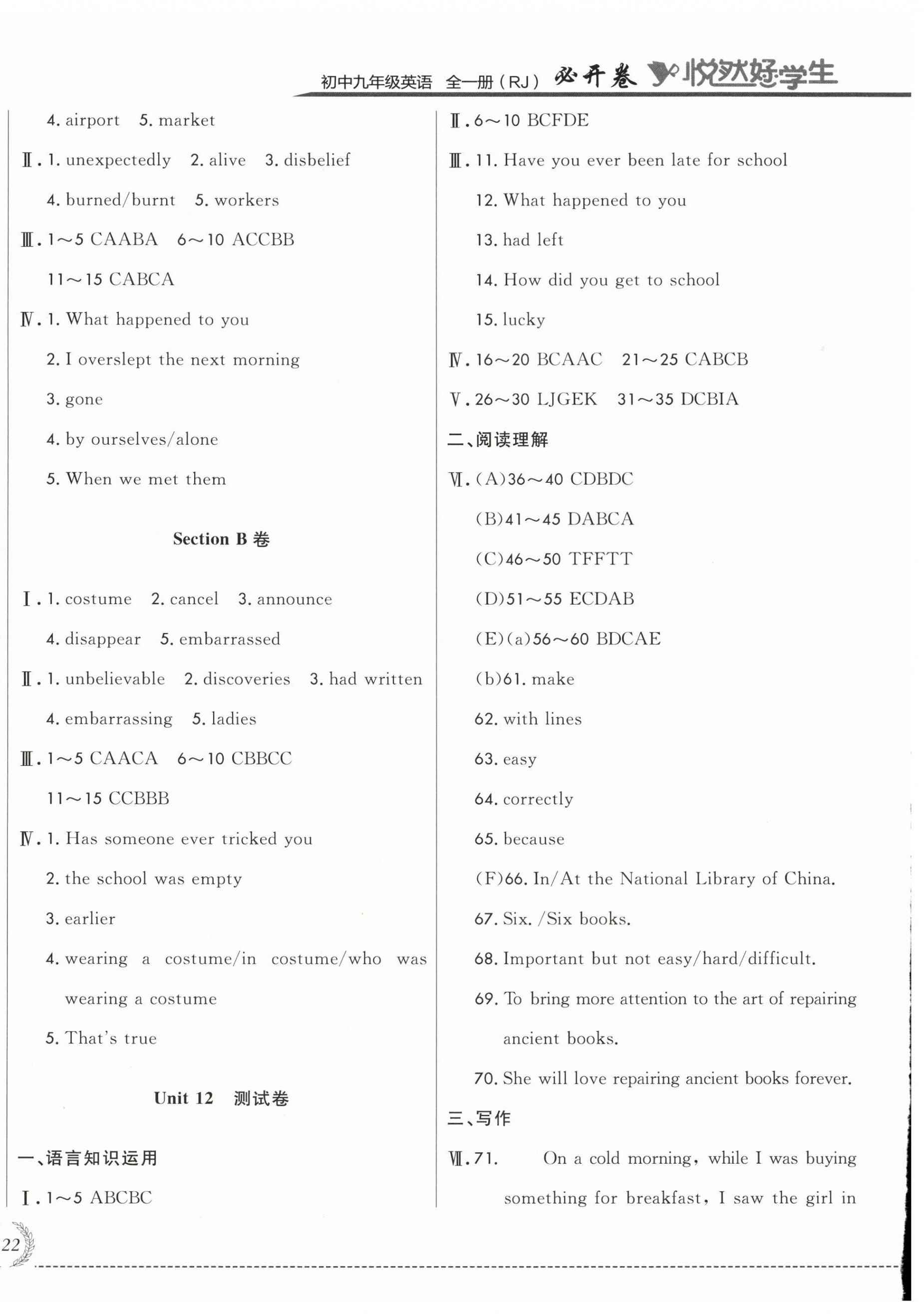 注:目前有些书本章节名称可能整理的还不是很完善,但都是按照顺序排列的,请同学们按照顺序仔细查找。练习册 2025年悦然好学生必开卷九年级英语全一册人教版吉林专版 答案主要是用来给同学们做完题方便对答案用的,请勿直接抄袭。