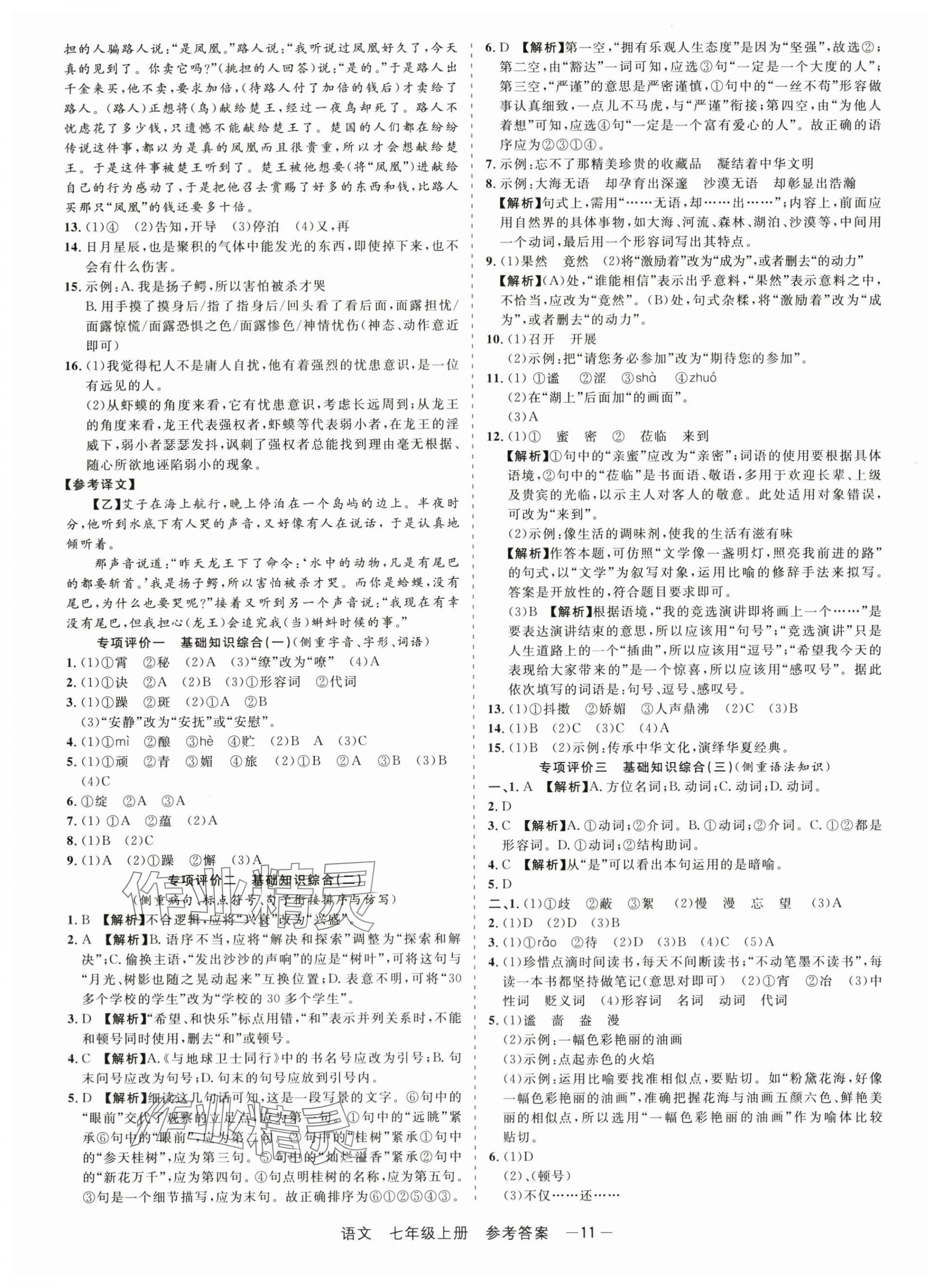 注:目前有些书本章节名称可能整理的还不是很完善,但都是按照顺序排列的,请同学们按照顺序仔细查找。练习册 2025年精彩三年就练这一本七年级语文上册人教版 答案主要是用来给同学们做完题方便对答案用的,请勿直接抄袭。