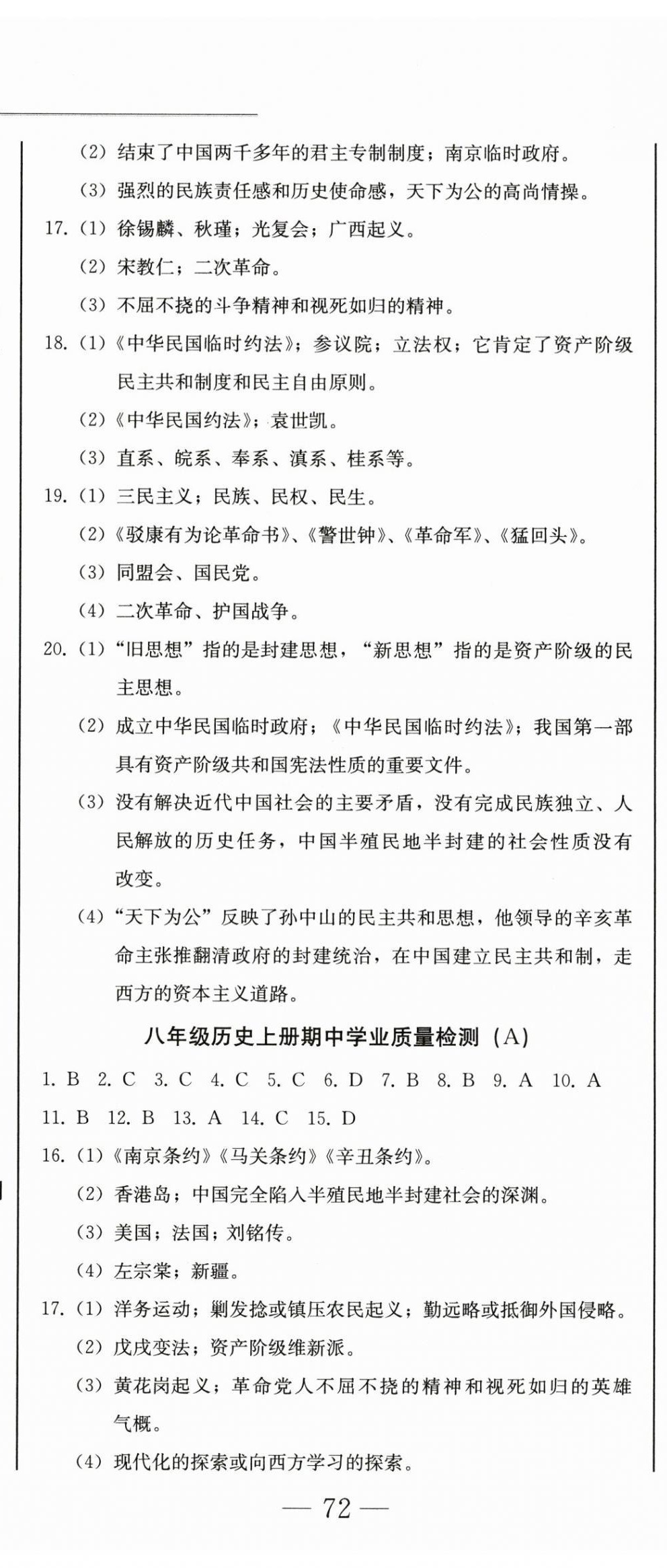 注:目前有些书本章节名称可能整理的还不是很完善,但都是按照顺序排列的,请同学们按照顺序仔细查找。练习册 2025年同步优化测试卷一卷通八年级历史上册人教版 答案主要是用来给同学们做完题方便对答案用的,请勿直接抄袭。
