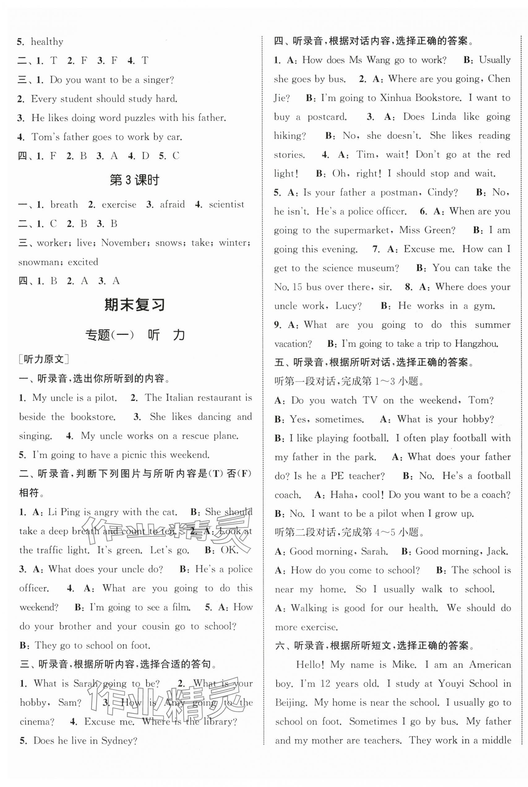 注:目前有些书本章节名称可能整理的还不是很完善,但都是按照顺序排列的,请同学们按照顺序仔细查找。练习册 2025年通城学典课时新体验六年级英语上册人教版 答案主要是用来给同学们做完题方便对答案用的,请勿直接抄袭。