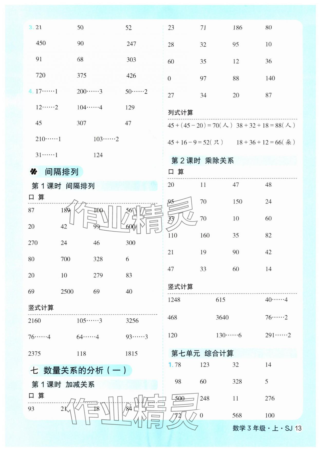 注:目前有些书本章节名称可能整理的还不是很完善,但都是按照顺序排列的,请同学们按照顺序仔细查找。练习册 2025年优翼口算天天练三年级数学上册苏教版 答案主要是用来给同学们做完题方便对答案用的,请勿直接抄袭。