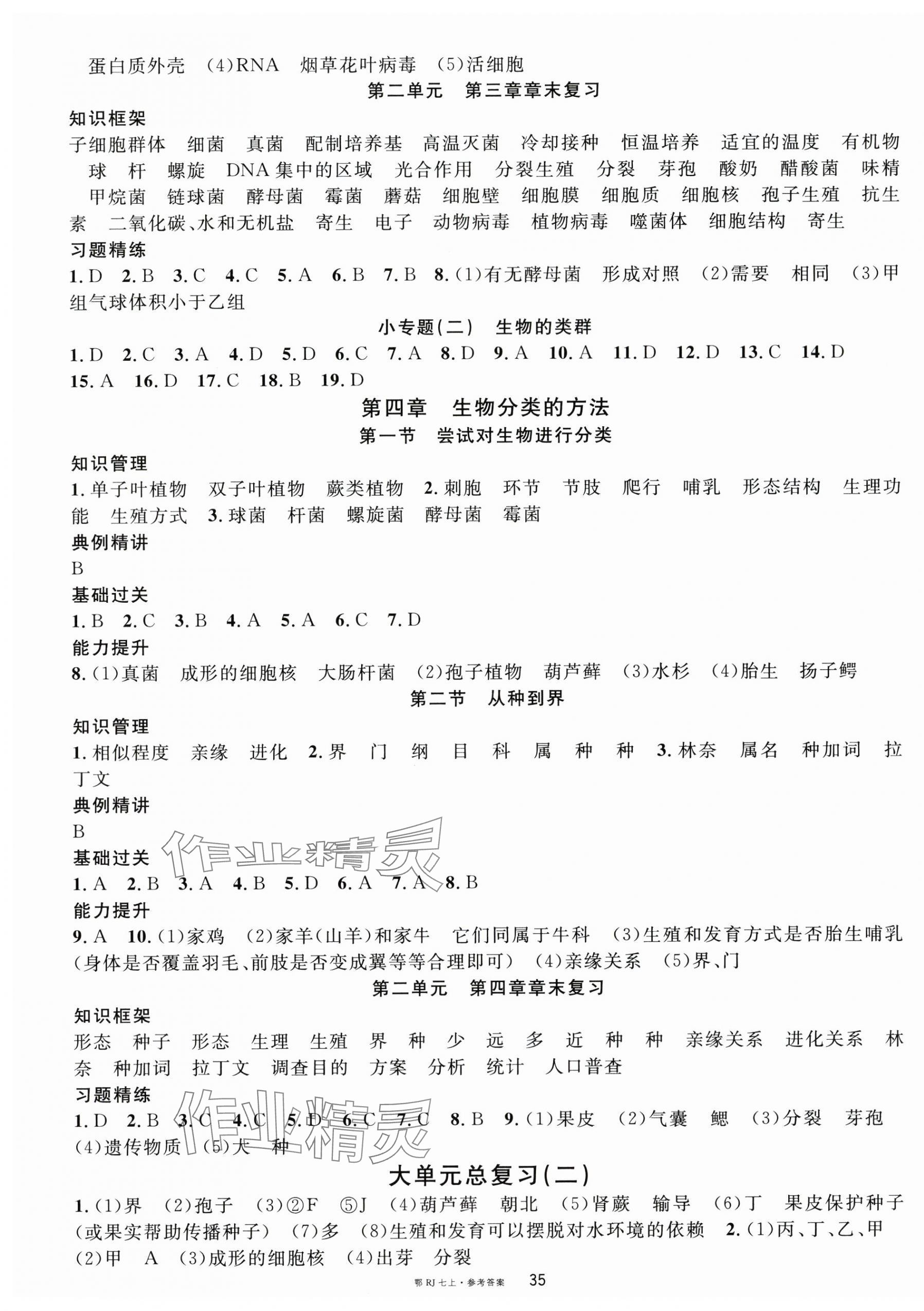 注:目前有些书本章节名称可能整理的还不是很完善,但都是按照顺序排列的,请同学们按照顺序仔细查找。练习册 2025年名校课堂七年级生物上册人教版湖北专版 答案主要是用来给同学们做完题方便对答案用的,请勿直接抄袭。