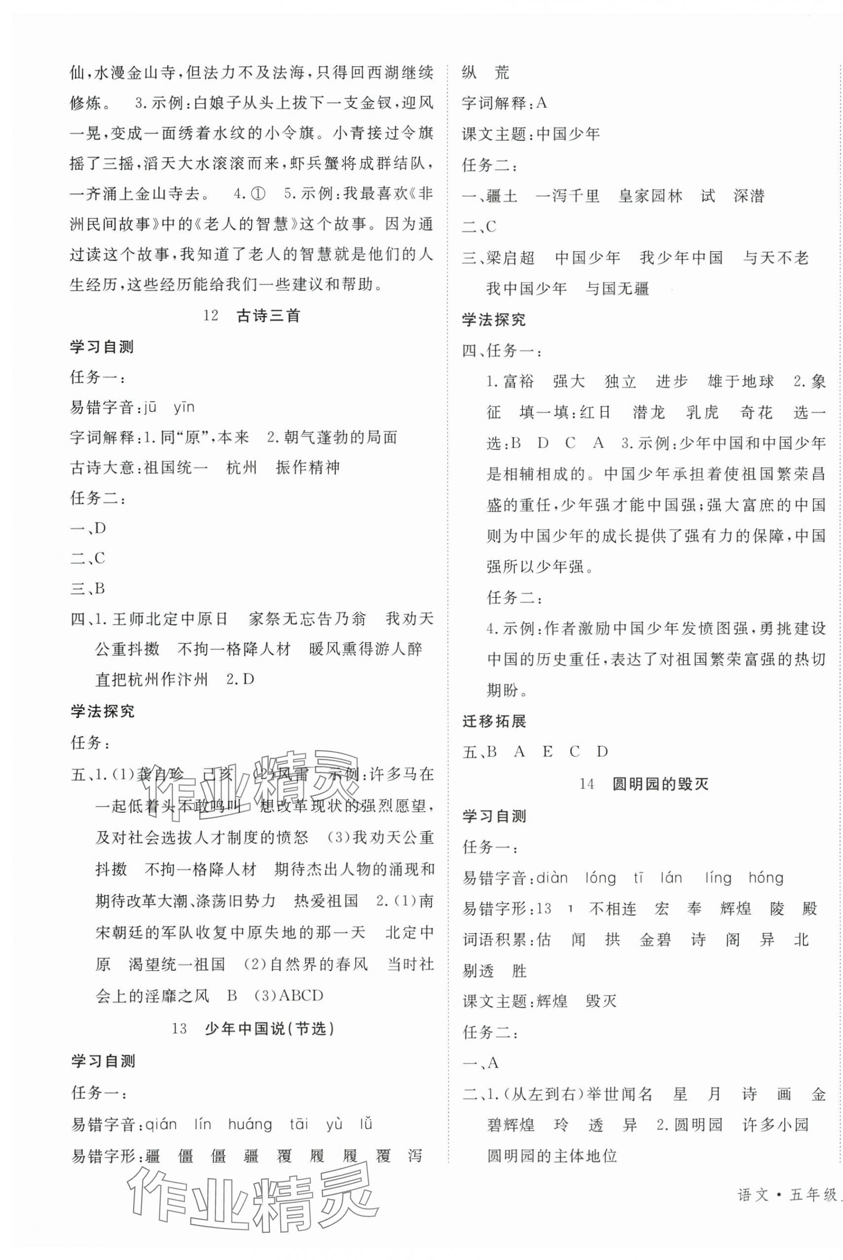 注:目前有些书本章节名称可能整理的还不是很完善,但都是按照顺序排列的,请同学们按照顺序仔细查找。练习册 2025年优翼学习单五年级语文上册人教版 答案主要是用来给同学们做完题方便对答案用的,请勿直接抄袭。